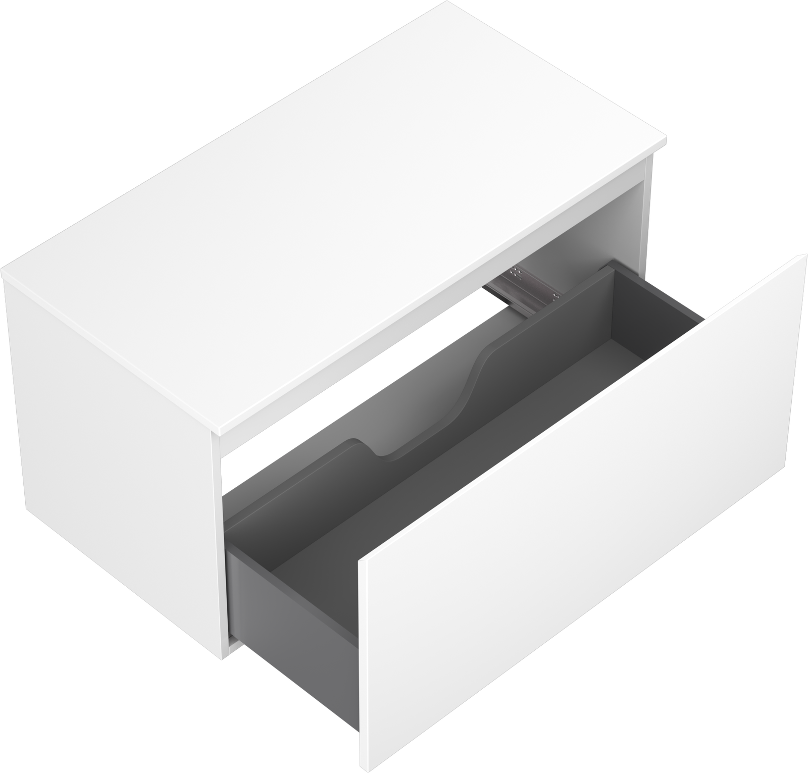 Η εγκοπή στο συρτάρι είναι σχεδιασμένη με τέτοιο τρόπο, ώστε να φιλοξενεί το σιφόνι, το οποίο είναι απαραίτητο στις εγκαταστάσεις νιπτήρων. Έτσι, το έπιπλο μπορεί να εγκατασταθεί πλήρως λειτουργικά, χωρίς την ανάγκη παραίτησης από χώρο στο συρτάρι υπέρ της εγκατάστασης.
