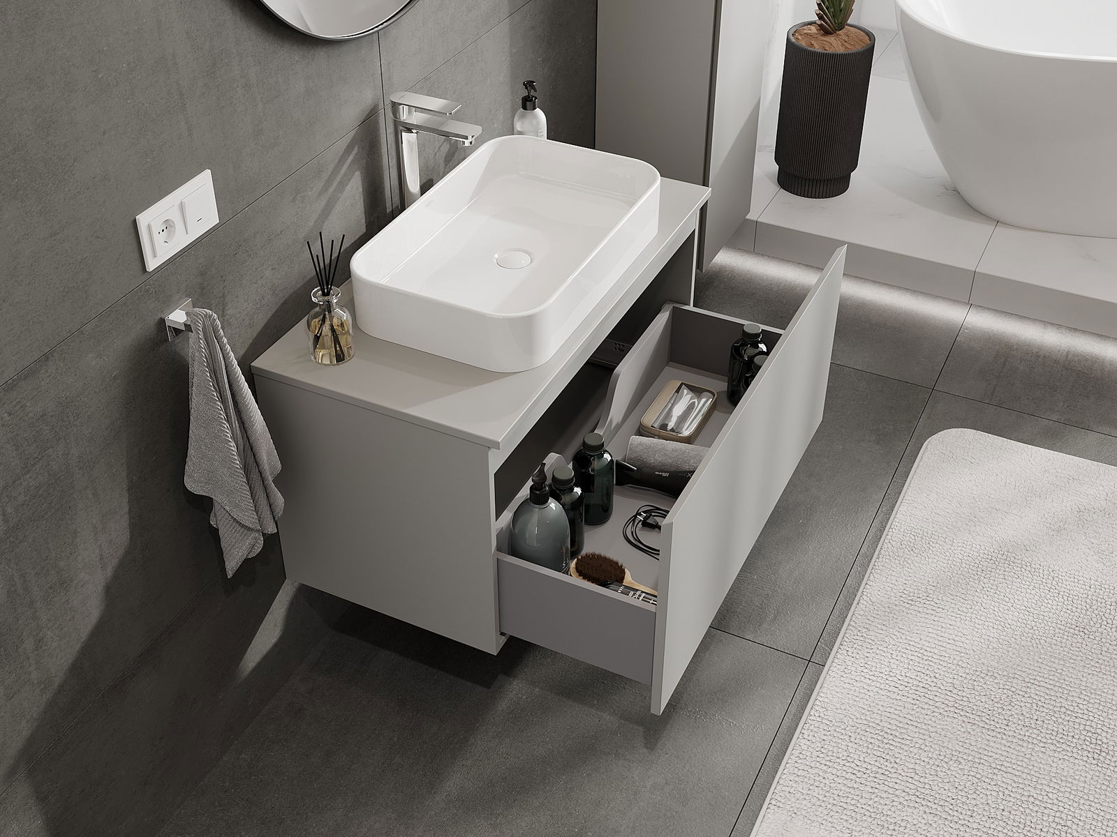 Mexen Orio ντουλάπι μπάνιου κάτω από νιπτήρα 90 εκ με πάγκο, 1 συρτάρι, γκρι