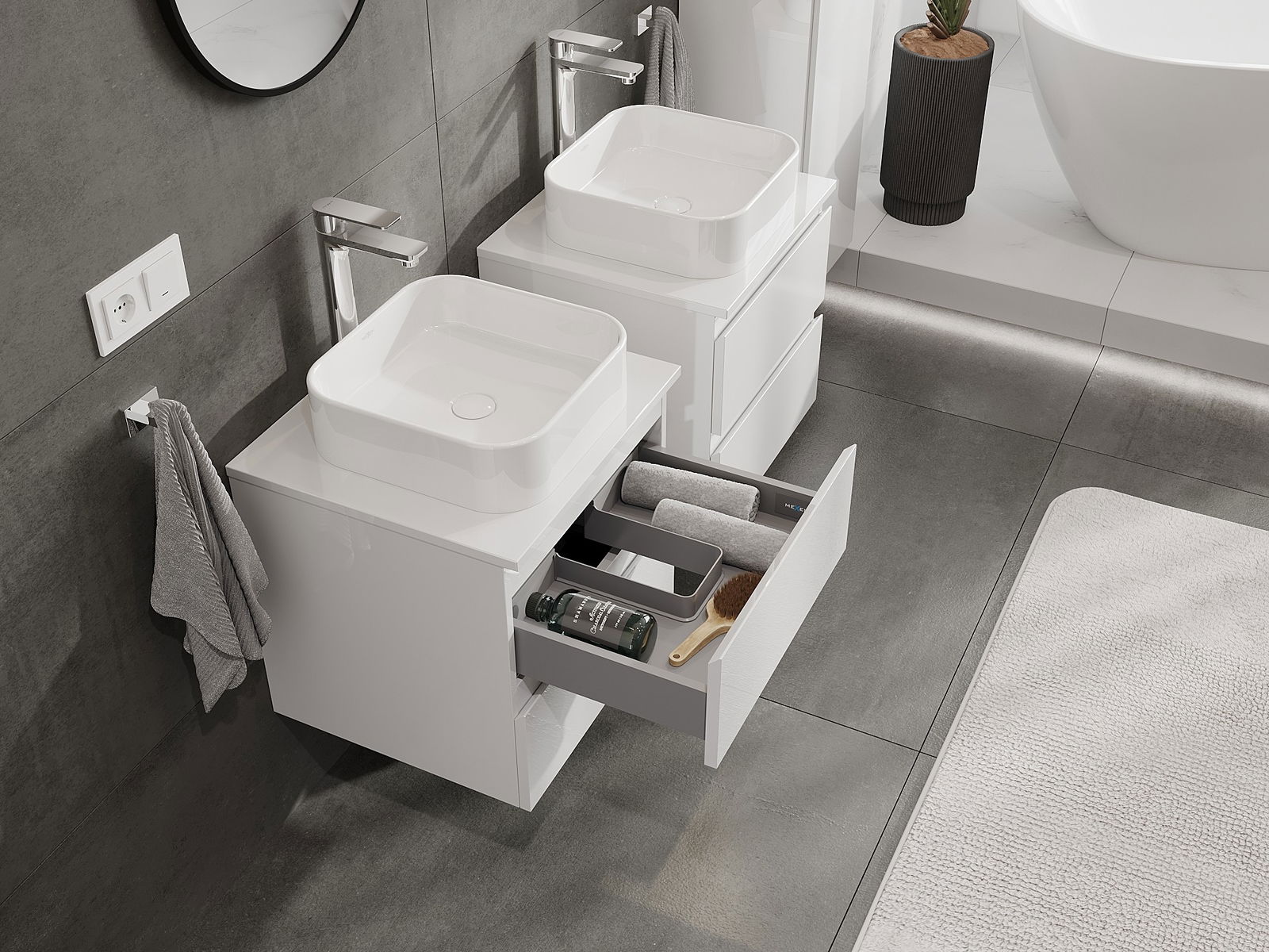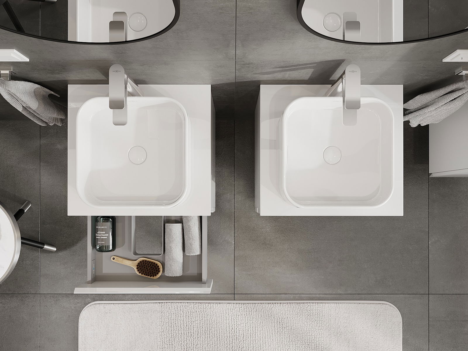 Τα αρθρωτά έπιπλα μπάνιου μας μπορούν να συνδυαστούν μεταξύ τους σε διάφορες χρωματικές διαμορφώσεις, επιτρέποντας πλήρη εξατομίκευση. Μπορείτε να επιλέξετε τόσο την εμφάνιση όσο και τις λειτουργίες των επιμέρους στοιχείων, ώστε να προσαρμόσετε τα έπιπλα στις δικές σας στιλιστικές και λειτουργικές προτιμήσεις.