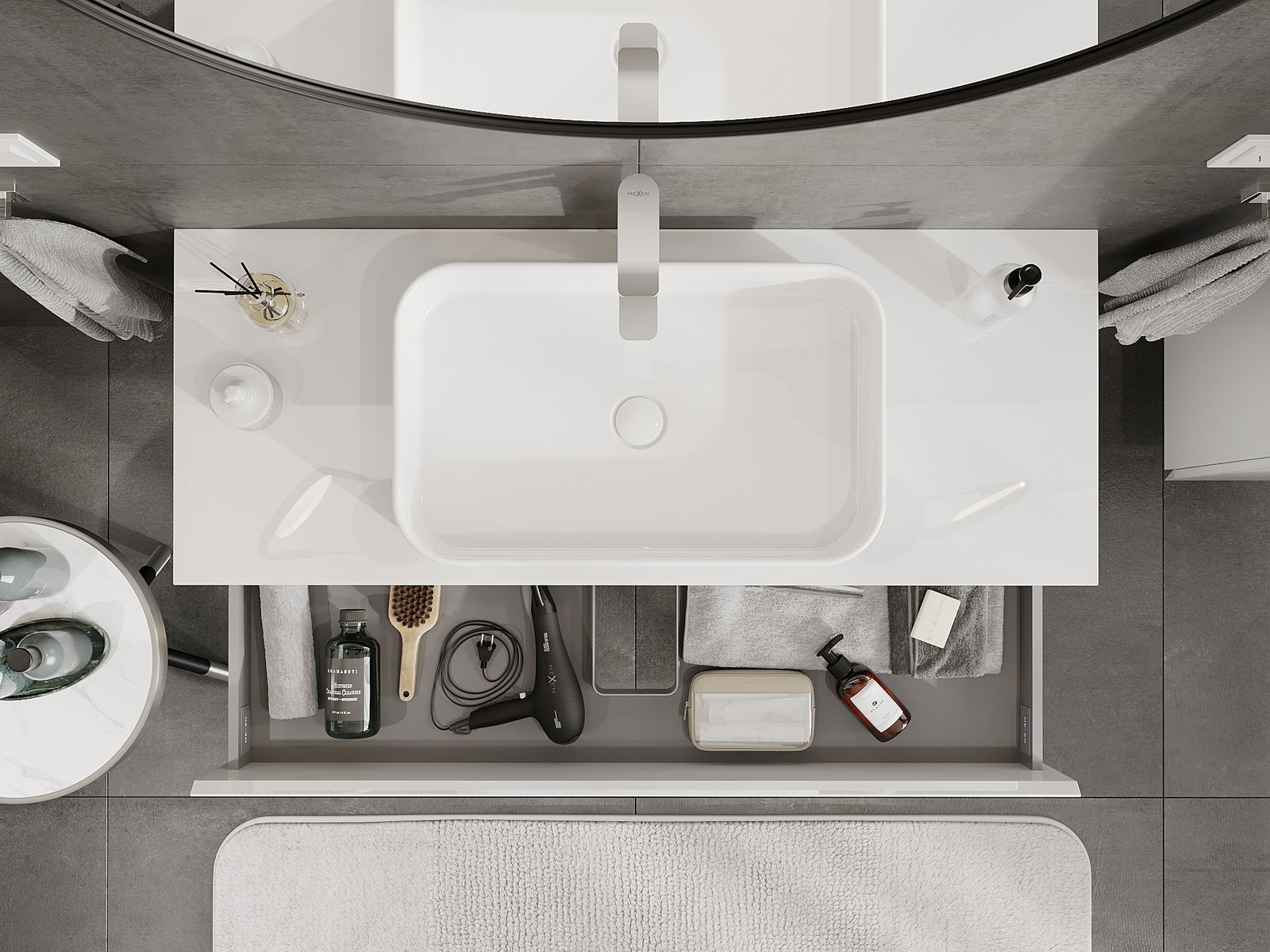 Mexen Orio ντουλάπι μπάνιου για νεροχύτη 120 cm με πάγκο, 2 συρτάρια, λευκή