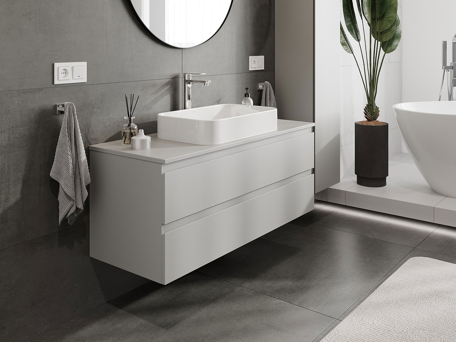 Τα αρθρωτά έπιπλα μπάνιου μας μπορούν να συνδυαστούν μεταξύ τους σε διάφορες χρωματικές διαμορφώσεις, επιτρέποντας πλήρη εξατομίκευση. Μπορείτε να επιλέξετε τόσο την εμφάνιση όσο και τις λειτουργίες των επιμέρους στοιχείων, ώστε να προσαρμόσετε τα έπιπλα στις δικές σας στιλιστικές και λειτουργικές προτιμήσεις.