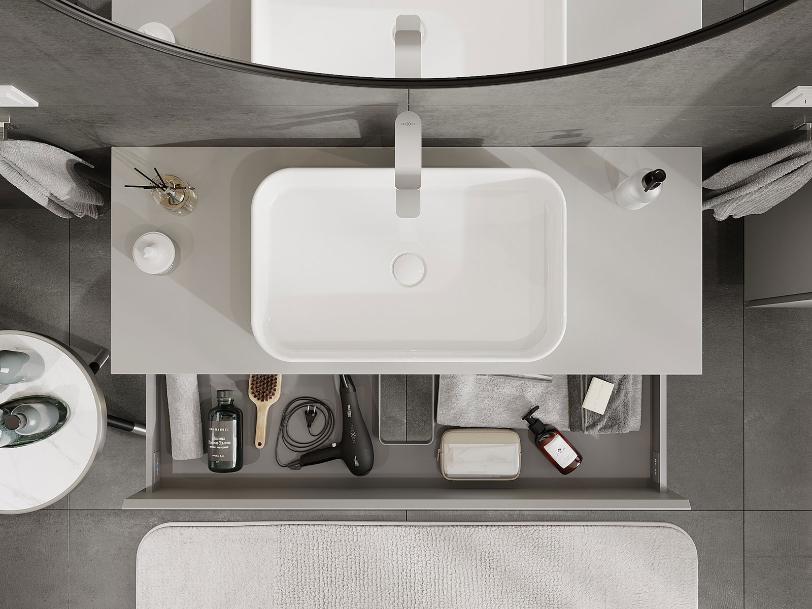 Mexen Orio ντουλάπι μπάνιου υπονοούμενο 120 cm με επιφάνεια, 2 συρτάρια, γκρι