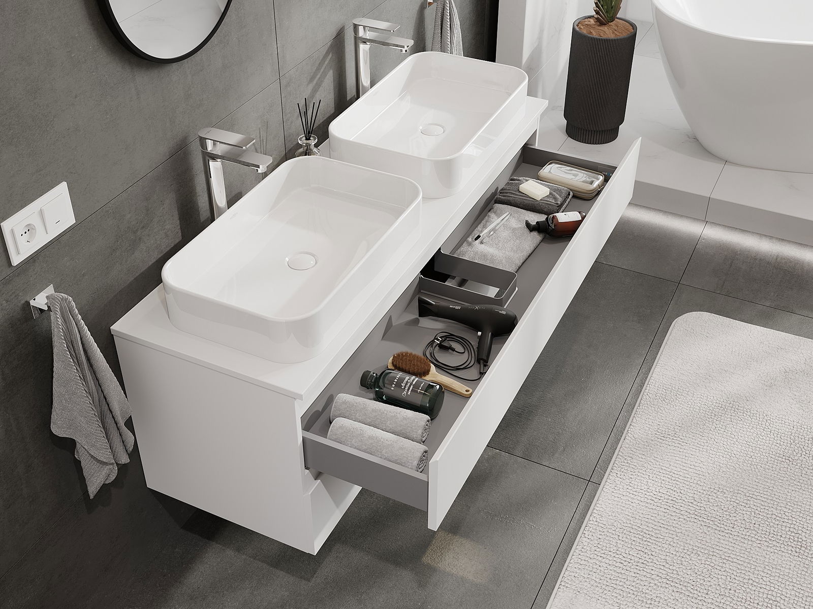 Mexen Orio ντουλάπι μπάνιου κάτω από νιπτήρα 140 cm με πάγκο, 2 συρτάρια, λευκό
