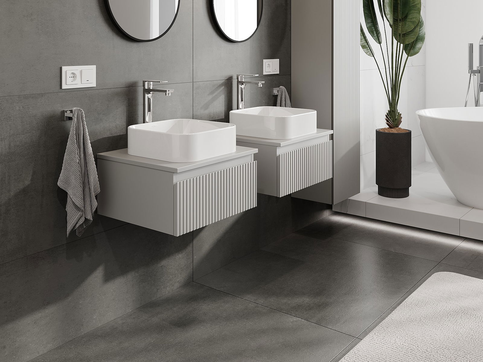 Τα αρθρωτά έπιπλα μπάνιου μας μπορούν να συνδυαστούν μεταξύ τους σε διάφορες χρωματικές διαμορφώσεις, επιτρέποντας πλήρη εξατομίκευση. Μπορείτε να επιλέξετε τόσο την εμφάνιση όσο και τις λειτουργίες των επιμέρους στοιχείων, ώστε να προσαρμόσετε τα έπιπλα στις δικές σας στιλιστικές και λειτουργικές προτιμήσεις.