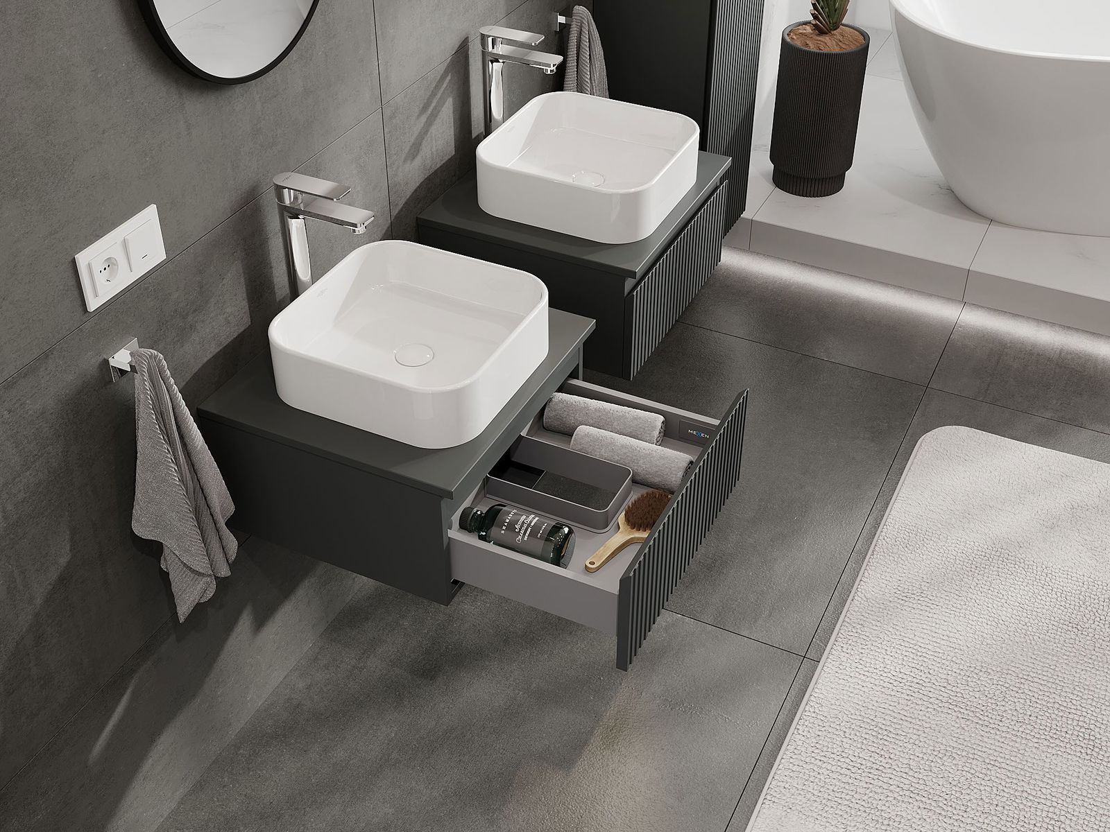 Τα αρθρωτά έπιπλα μπάνιου μας μπορούν να συνδυαστούν μεταξύ τους σε διάφορες χρωματικές διαμορφώσεις, επιτρέποντας πλήρη εξατομίκευση. Μπορείτε να επιλέξετε τόσο την εμφάνιση όσο και τις λειτουργίες των επιμέρους στοιχείων, ώστε να προσαρμόσετε τα έπιπλα στις δικές σας στιλιστικές και λειτουργικές προτιμήσεις.