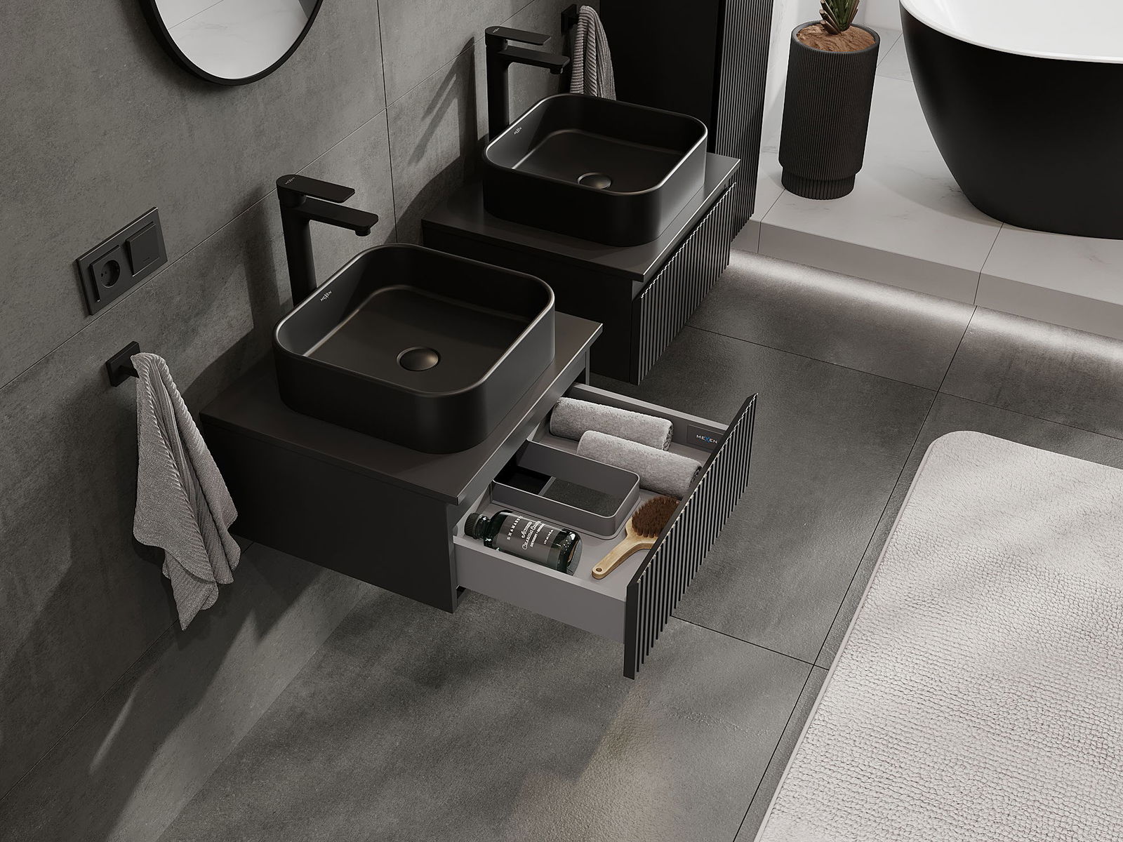 Mexen Rivel ντουλάπι μπάνιου διπλής λεκάνης 50 cm με επιφάνεια, 1 συρτάρι,
