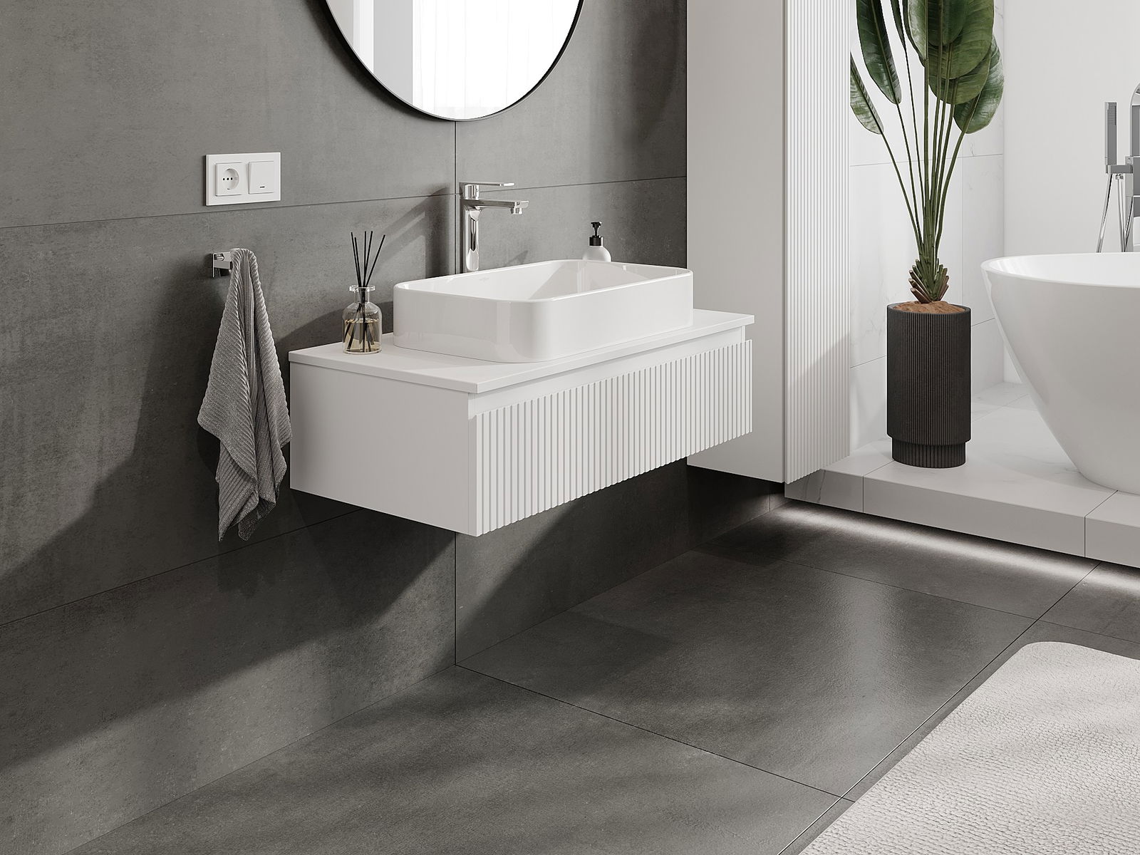 Mexen Rivel ντουλάπι μπάνιου 90 cm με πάγκο, 1 συρτάρι, αυλακωτή, λευκή ματ