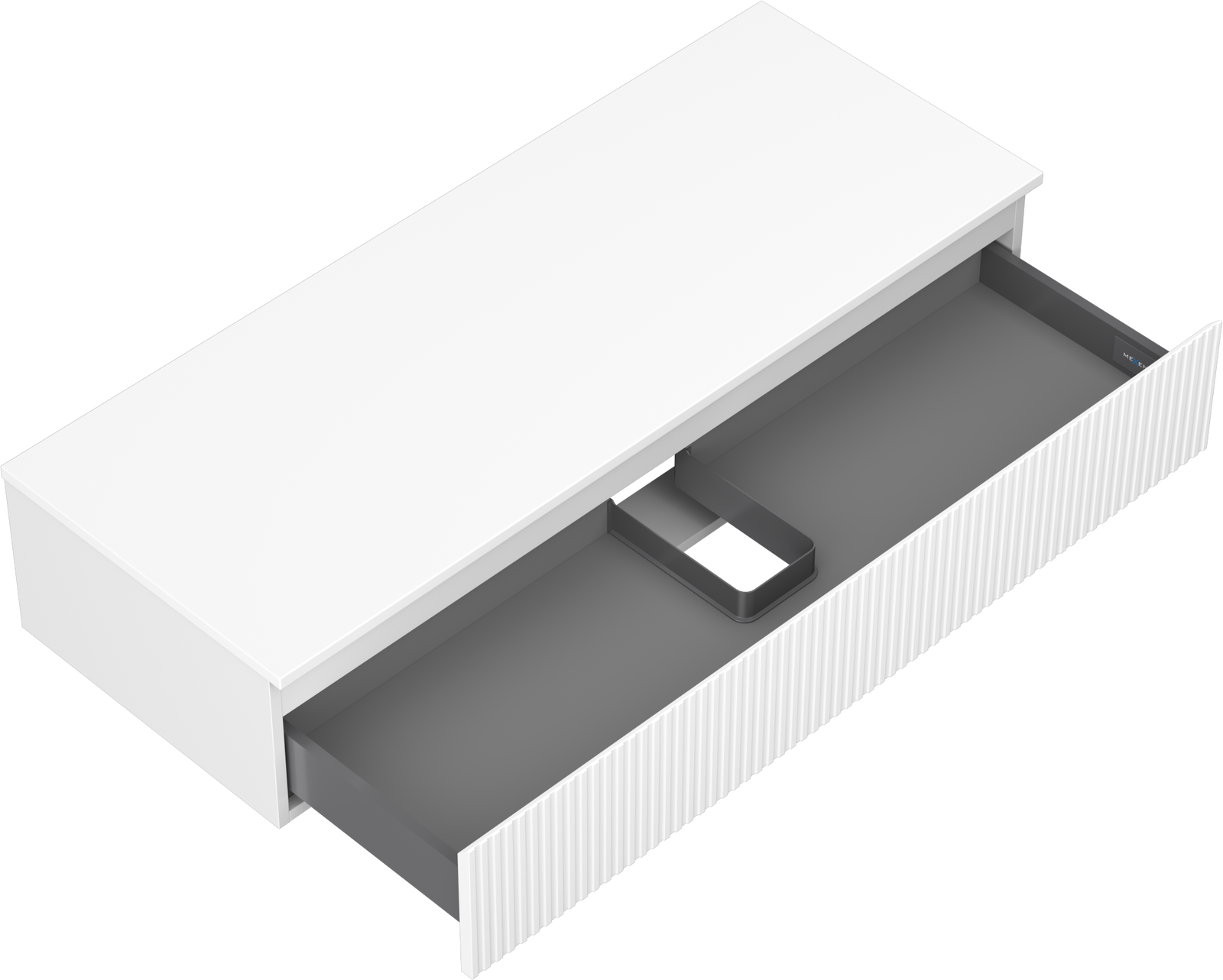 Η εγκοπή στο συρτάρι είναι σχεδιασμένη με τέτοιο τρόπο, ώστε να φιλοξενεί το σιφόνι, το οποίο είναι απαραίτητο στις εγκαταστάσεις νιπτήρων. Έτσι, το έπιπλο μπορεί να εγκατασταθεί πλήρως λειτουργικά, χωρίς την ανάγκη παραίτησης από χώρο στο συρτάρι υπέρ της εγκατάστασης.