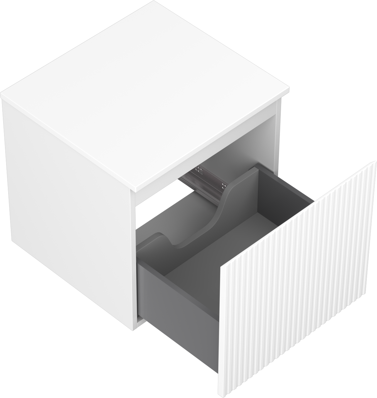Η εγκοπή στο συρτάρι είναι σχεδιασμένη με τέτοιο τρόπο, ώστε να φιλοξενεί το σιφόνι, το οποίο είναι απαραίτητο στις εγκαταστάσεις νιπτήρων. Έτσι, το έπιπλο μπορεί να εγκατασταθεί πλήρως λειτουργικά, χωρίς την ανάγκη παραίτησης από χώρο στο συρτάρι υπέρ της εγκατάστασης.
