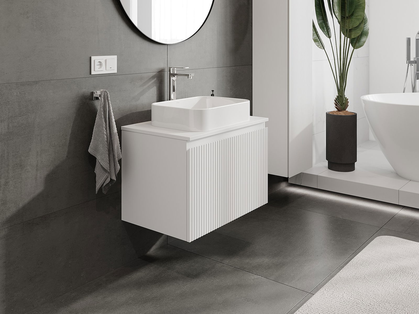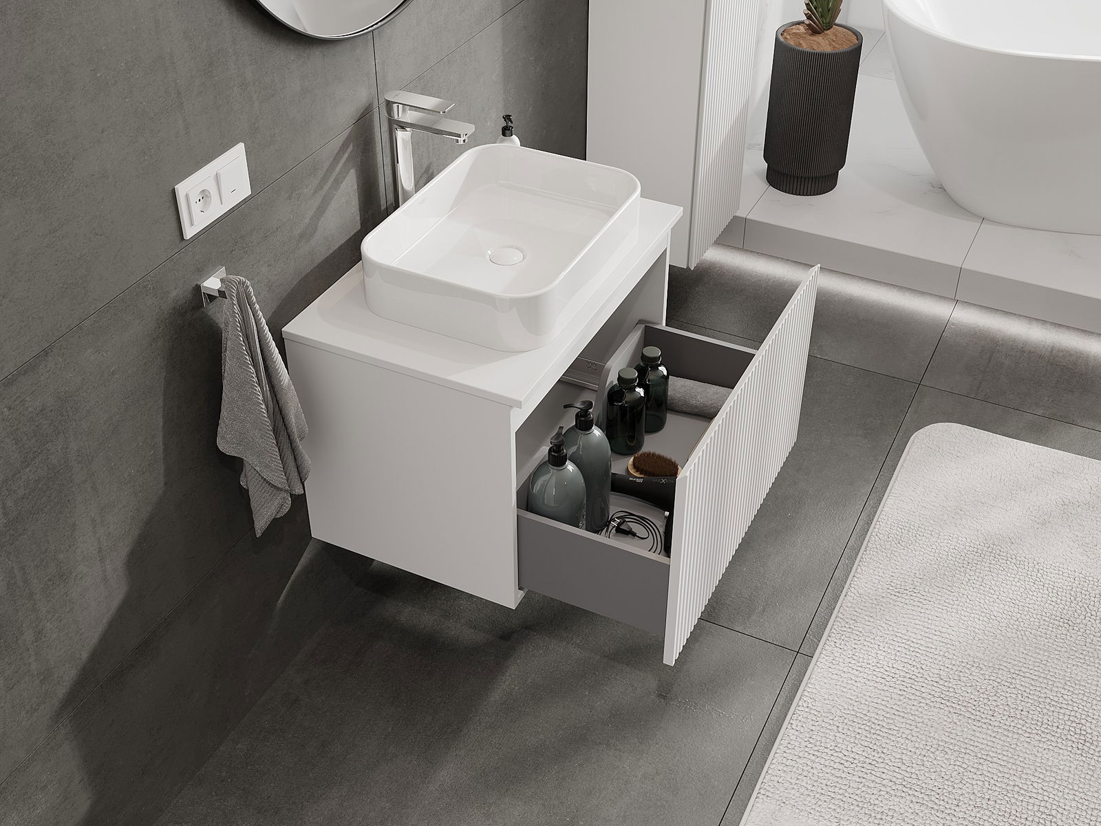 Mexen Rivel ντουλάπι μπάνιου 70 cm με επιφάνεια, 1 συρτάρι, αυλακωμένο, λευκό
