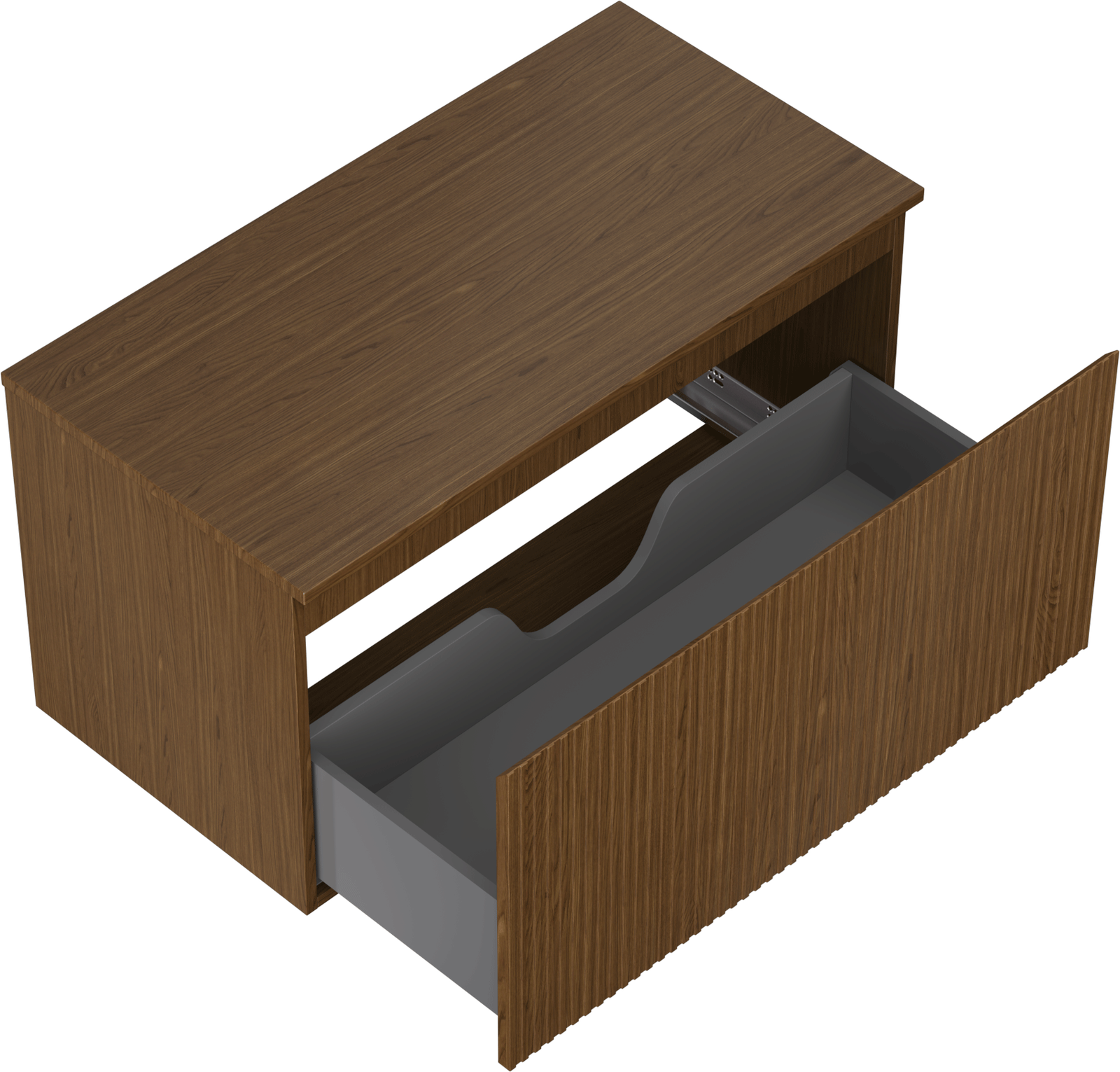 Η εγκοπή στο συρτάρι είναι σχεδιασμένη με τέτοιο τρόπο, ώστε να φιλοξενεί το σιφόνι, το οποίο είναι απαραίτητο στις εγκαταστάσεις νιπτήρων. Έτσι, το έπιπλο μπορεί να εγκατασταθεί πλήρως λειτουργικά, χωρίς την ανάγκη παραίτησης από χώρο στο συρτάρι υπέρ της εγκατάστασης.