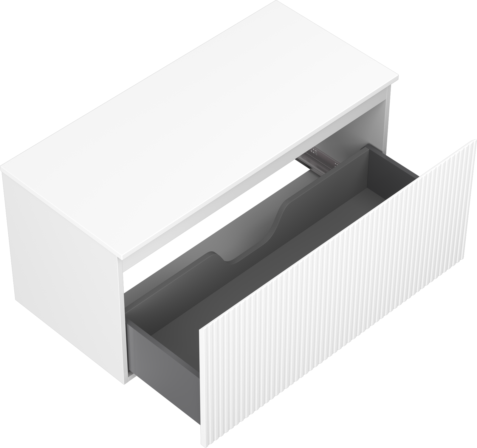 Η εγκοπή στο συρτάρι είναι σχεδιασμένη με τέτοιο τρόπο, ώστε να φιλοξενεί το σιφόνι, το οποίο είναι απαραίτητο στις εγκαταστάσεις νιπτήρων. Έτσι, το έπιπλο μπορεί να εγκατασταθεί πλήρως λειτουργικά, χωρίς την ανάγκη παραίτησης από χώρο στο συρτάρι υπέρ της εγκατάστασης.