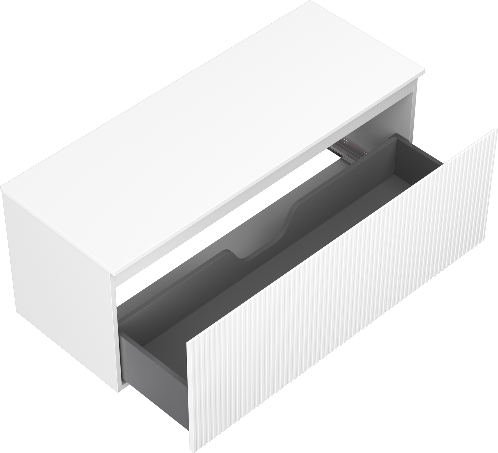 Η εγκοπή στο συρτάρι είναι σχεδιασμένη με τέτοιο τρόπο, ώστε να φιλοξενεί το σιφόνι, το οποίο είναι απαραίτητο στις εγκαταστάσεις νιπτήρων. Έτσι, το έπιπλο μπορεί να εγκατασταθεί πλήρως λειτουργικά, χωρίς την ανάγκη παραίτησης από χώρο στο συρτάρι υπέρ της εγκατάστασης.