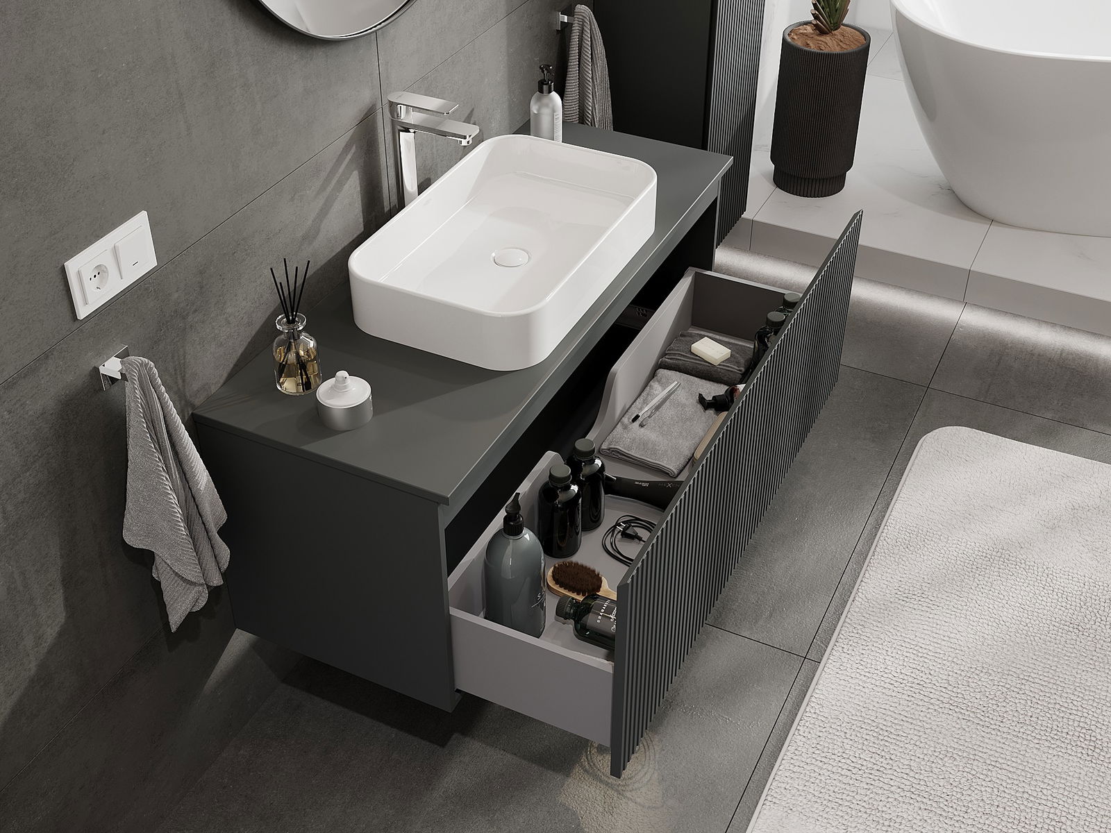 Mexen Rivel ντουλάπι μπάνιου με πάγκο 120 cm, 1 συρτάρι, αυλακωτό, ματ γραφίτης
