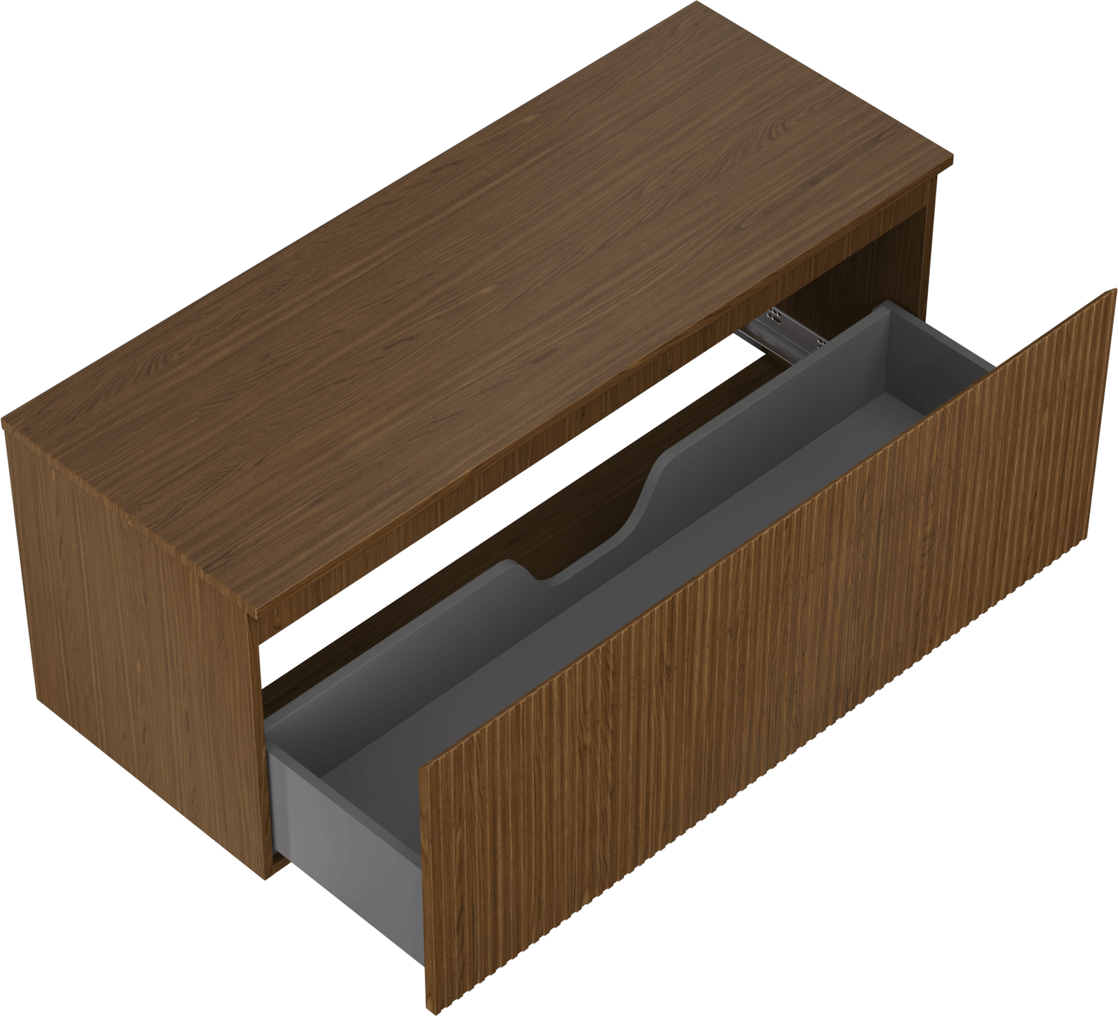 Η εγκοπή στο συρτάρι είναι σχεδιασμένη με τέτοιο τρόπο, ώστε να φιλοξενεί το σιφόνι, το οποίο είναι απαραίτητο στις εγκαταστάσεις νιπτήρων. Έτσι, το έπιπλο μπορεί να εγκατασταθεί πλήρως λειτουργικά, χωρίς την ανάγκη παραίτησης από χώρο στο συρτάρι υπέρ της εγκατάστασης.