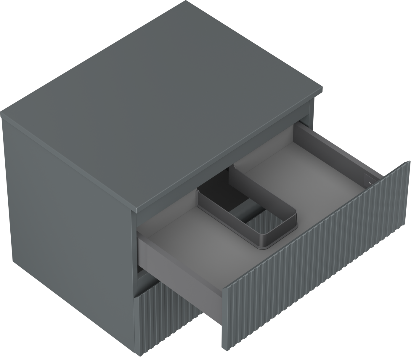 Η εγκοπή στο συρτάρι είναι σχεδιασμένη με τέτοιο τρόπο, ώστε να φιλοξενεί το σιφόνι, το οποίο είναι απαραίτητο στις εγκαταστάσεις νιπτήρων. Έτσι, το έπιπλο μπορεί να εγκατασταθεί πλήρως λειτουργικά, χωρίς την ανάγκη παραίτησης από χώρο στο συρτάρι υπέρ της εγκατάστασης.