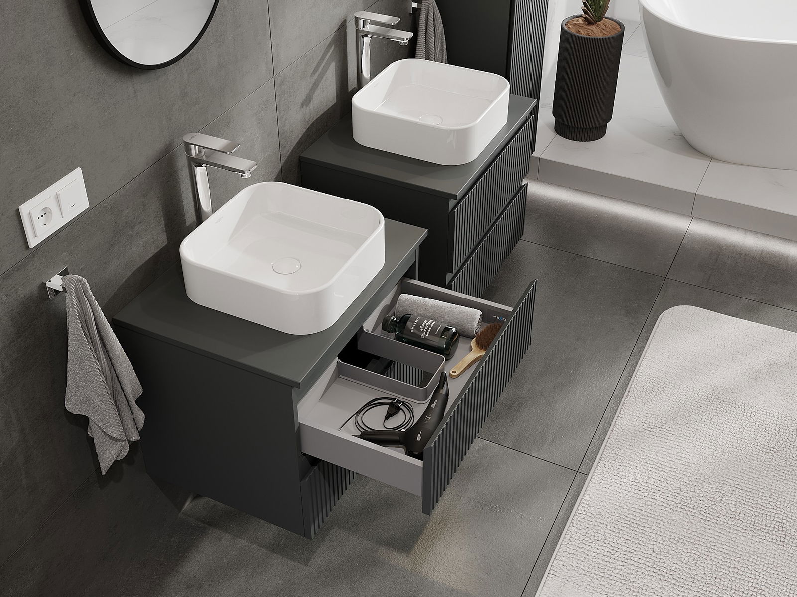Mexen Rivel ντουλάπι μπάνιου 60 cm με πάγκο, 2 συρτάρια, ραβδωτό, ματ γραφίτης
