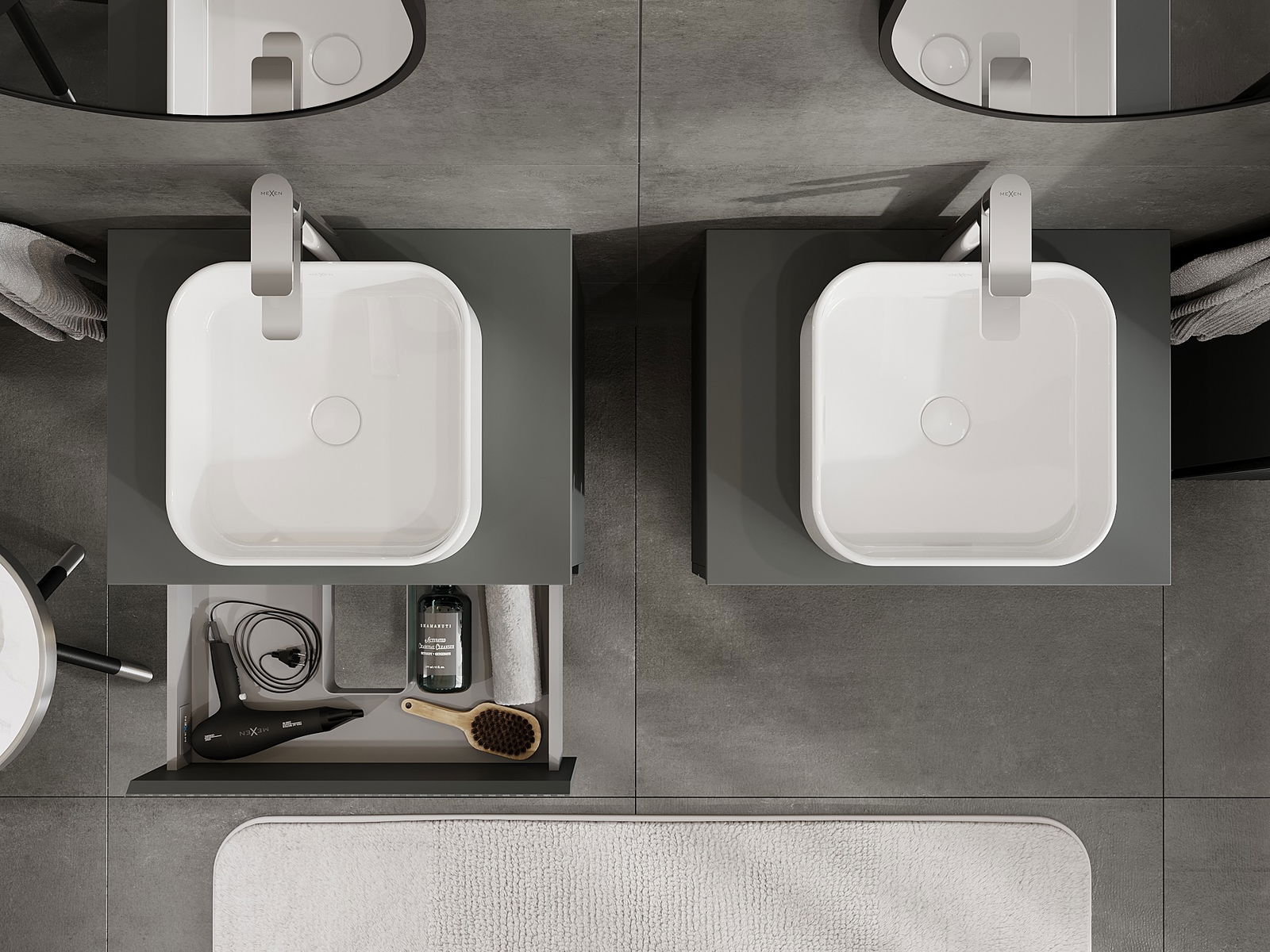 Τα αρθρωτά έπιπλα μπάνιου μας μπορούν να συνδυαστούν μεταξύ τους σε διάφορες χρωματικές διαμορφώσεις, επιτρέποντας πλήρη εξατομίκευση. Μπορείτε να επιλέξετε τόσο την εμφάνιση όσο και τις λειτουργίες των επιμέρους στοιχείων, ώστε να προσαρμόσετε τα έπιπλα στις δικές σας στιλιστικές και λειτουργικές προτιμήσεις.