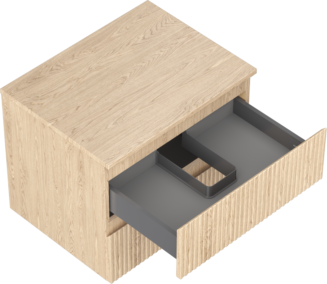 Η εγκοπή στο συρτάρι είναι σχεδιασμένη με τέτοιο τρόπο, ώστε να φιλοξενεί το σιφόνι, το οποίο είναι απαραίτητο στις εγκαταστάσεις νιπτήρων. Έτσι, το έπιπλο μπορεί να εγκατασταθεί πλήρως λειτουργικά, χωρίς την ανάγκη παραίτησης από χώρο στο συρτάρι υπέρ της εγκατάστασης.