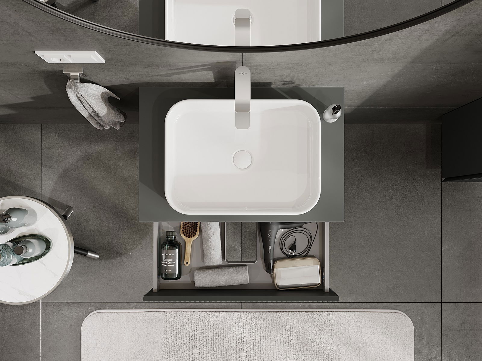 Mexen Rivel ντουλάπι μπάνιου κάτω από νιπτήρα 70 cm με πάγκο, 2 συρτάρια,