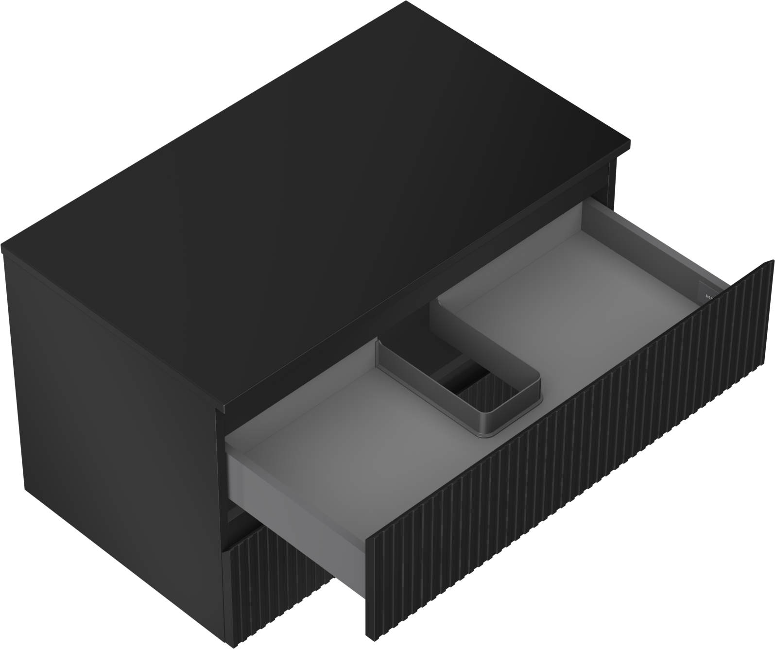 Η εγκοπή στο συρτάρι είναι σχεδιασμένη με τέτοιο τρόπο, ώστε να φιλοξενεί το σιφόνι, το οποίο είναι απαραίτητο στις εγκαταστάσεις νιπτήρων. Έτσι, το έπιπλο μπορεί να εγκατασταθεί πλήρως λειτουργικά, χωρίς την ανάγκη παραίτησης από χώρο στο συρτάρι υπέρ της εγκατάστασης.