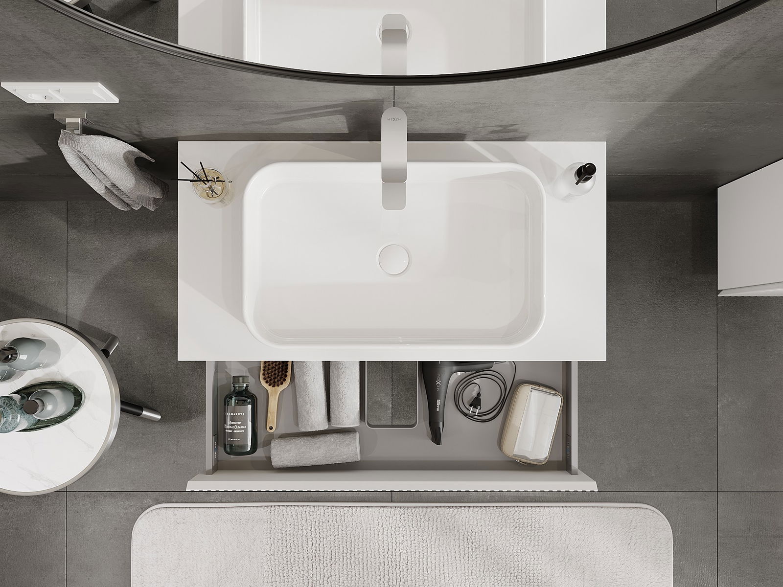 Mexen Rivel ντουλάπι μπάνιου κάτω από το νιπτήρα 90 εκ με πάγκο, 2 συρτάρια,