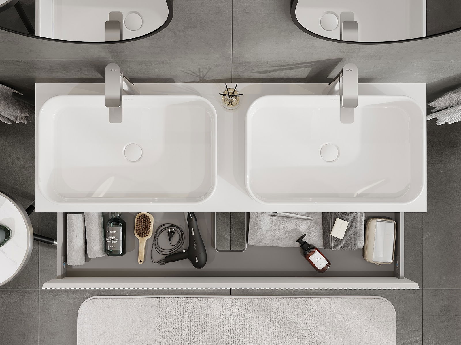 Mexen Rivel ντουλάπι μπάνιου κάτω από τον νιπτήρα 140 cm με πάγκο, 2 συρτάρια,