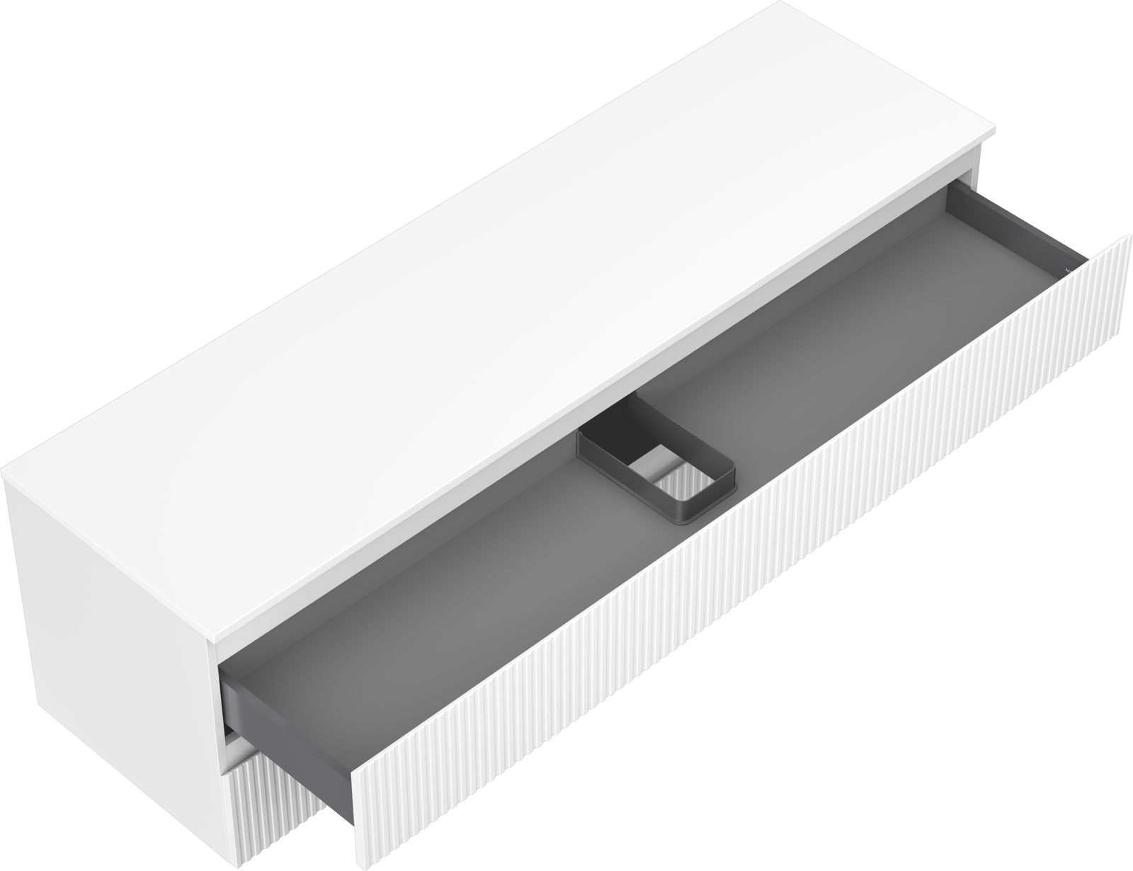 Η εγκοπή στο συρτάρι είναι σχεδιασμένη με τέτοιο τρόπο, ώστε να φιλοξενεί το σιφόνι, το οποίο είναι απαραίτητο στις εγκαταστάσεις νιπτήρων. Έτσι, το έπιπλο μπορεί να εγκατασταθεί πλήρως λειτουργικά, χωρίς την ανάγκη παραίτησης από χώρο στο συρτάρι υπέρ της εγκατάστασης.