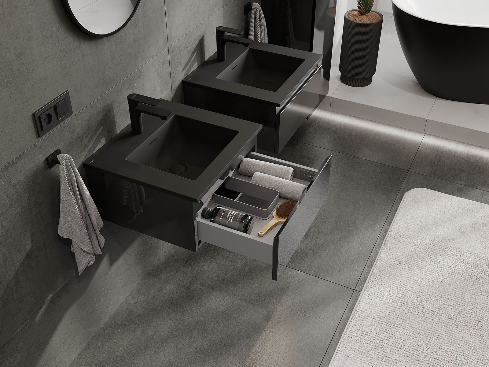 Mexen Orio ντουλάπι μπάνιου 50 cm με νιπτήρα Otis, 1 συρτάρι, μαύρο