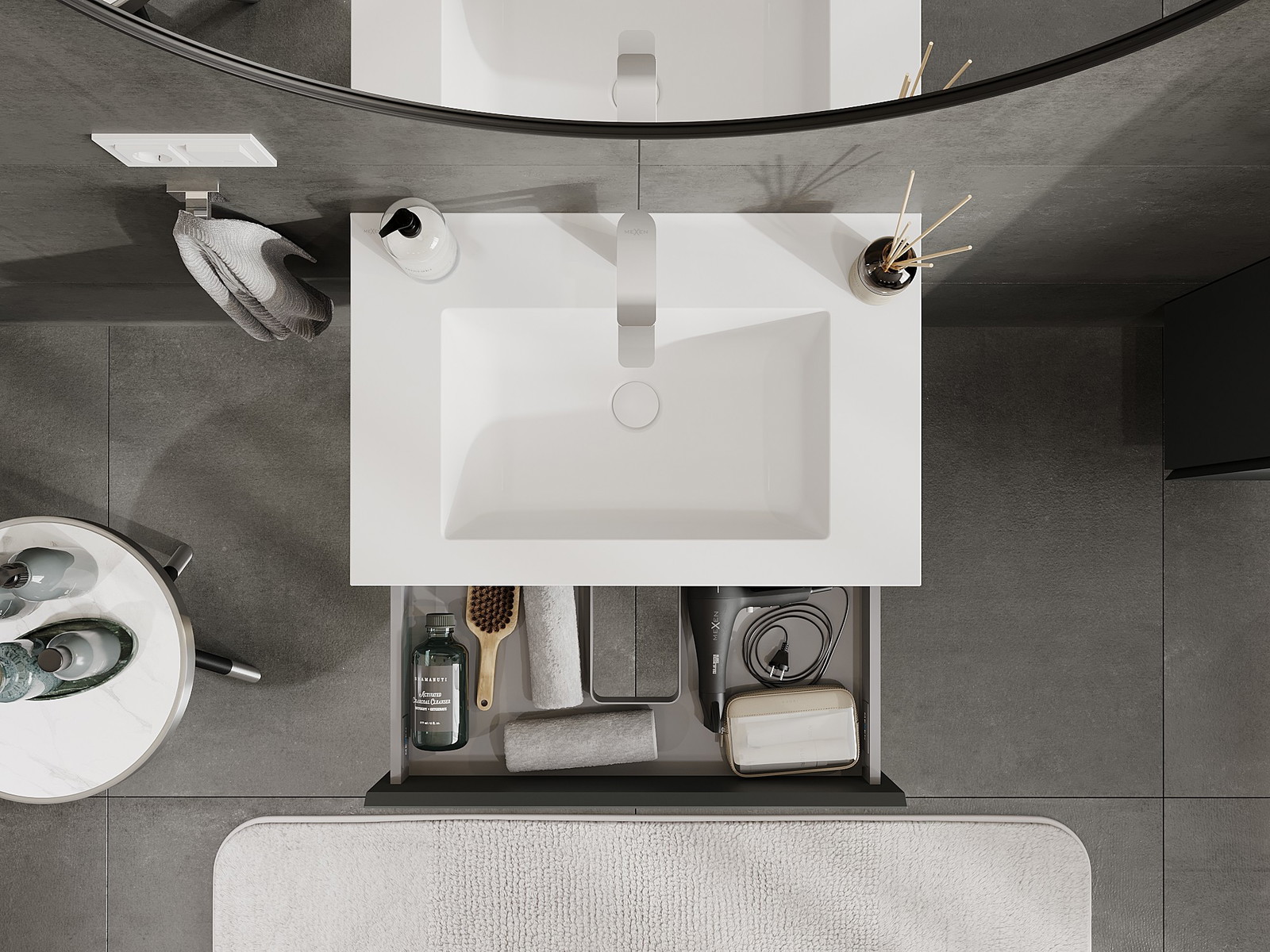 Mexen Orio ντουλάπι μπάνιου 70 cm με νιπτήρα Otis, 1 συρτάρι, γραφίτης ματ/λευκό