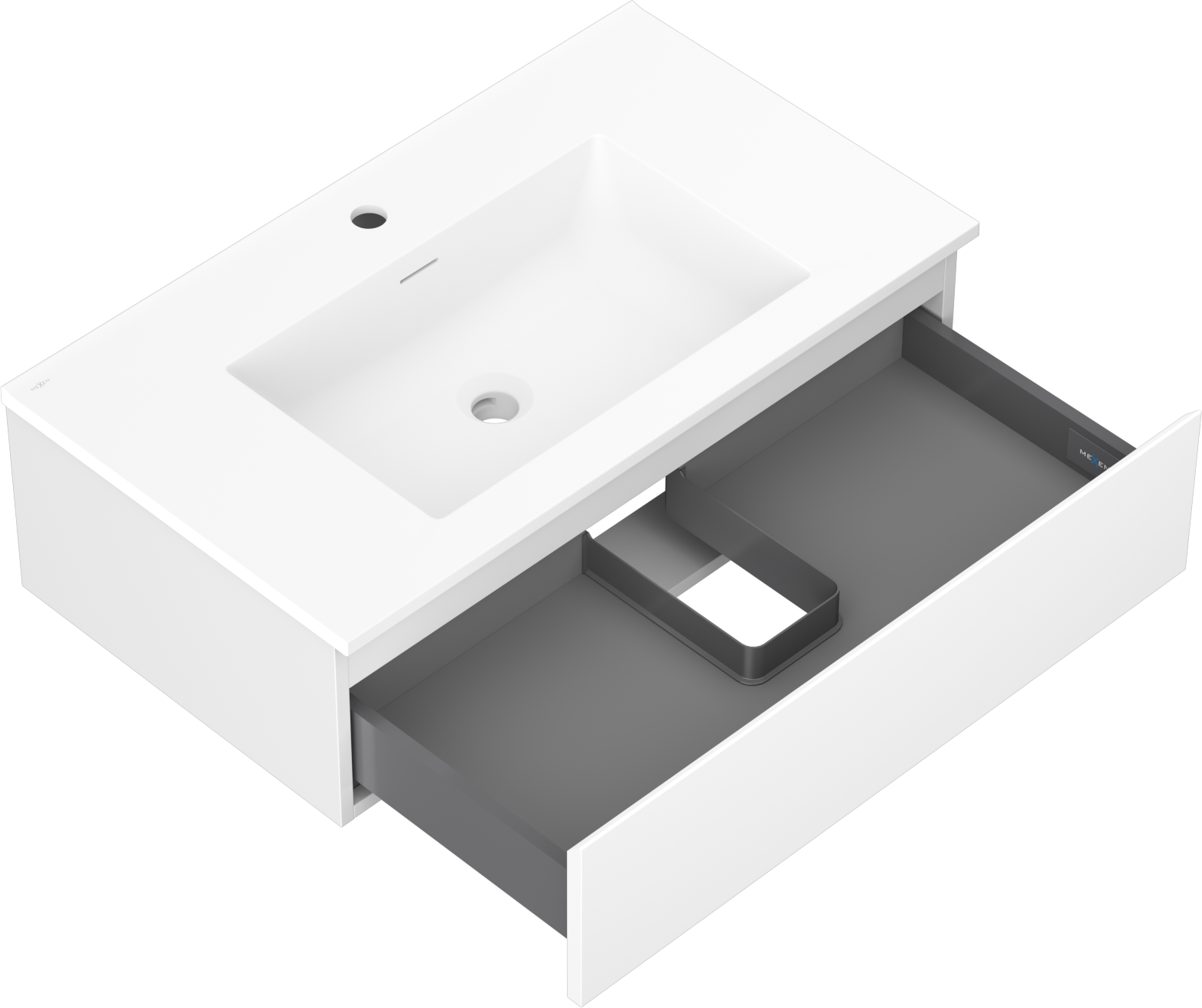 Η εγκοπή στο συρτάρι είναι σχεδιασμένη με τέτοιο τρόπο, ώστε να φιλοξενεί το σιφόνι, το οποίο είναι απαραίτητο στις εγκαταστάσεις νιπτήρων. Έτσι, το έπιπλο μπορεί να εγκατασταθεί πλήρως λειτουργικά, χωρίς την ανάγκη παραίτησης από χώρο στο συρτάρι υπέρ της εγκατάστασης.