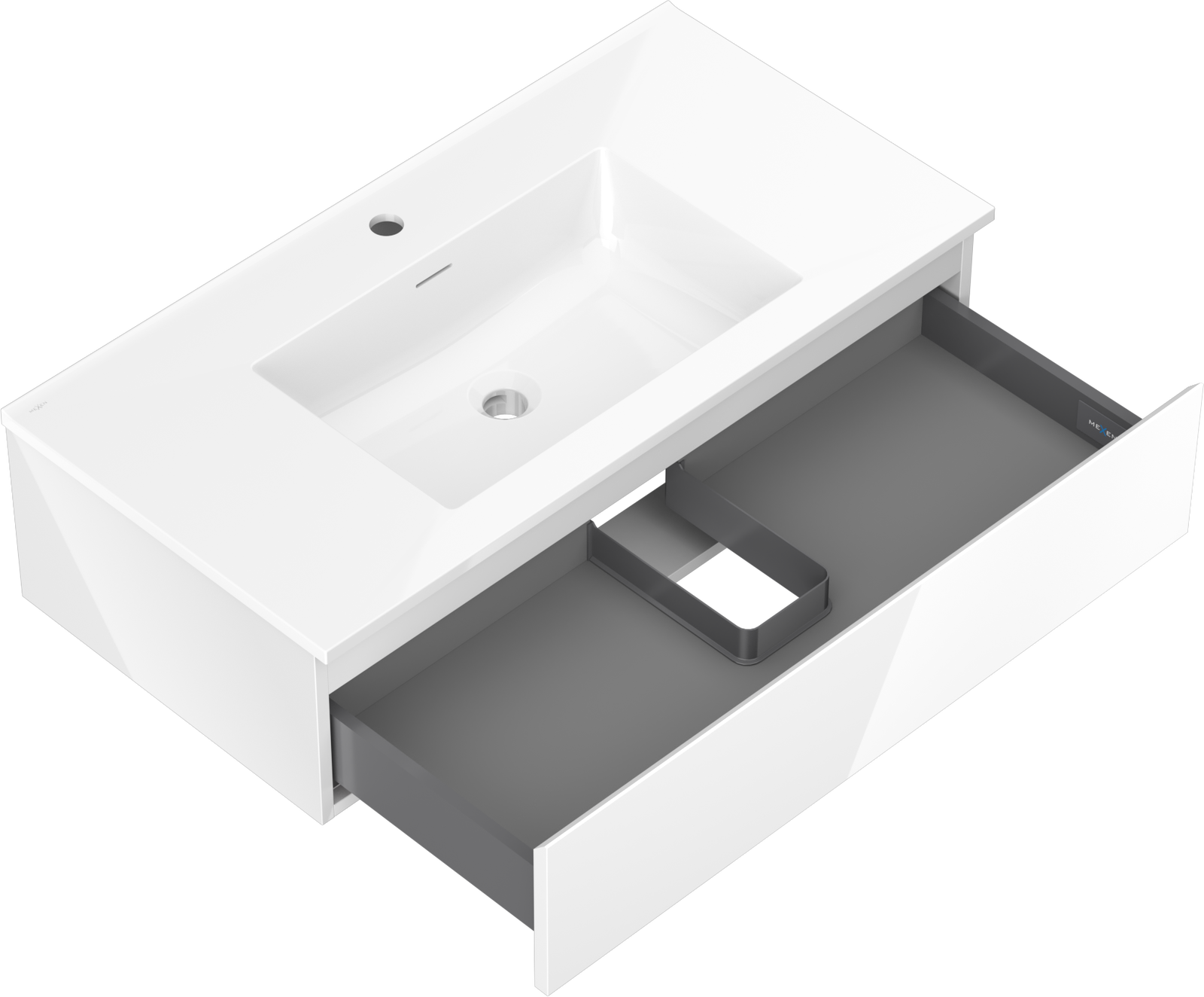 Mexen Orio ντουλάπι μπάνιου 90 cm με νιπτήρα Otis, 1 συρτάρι, λευκή γυαλιστερή