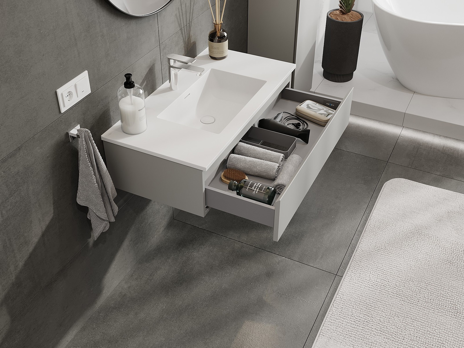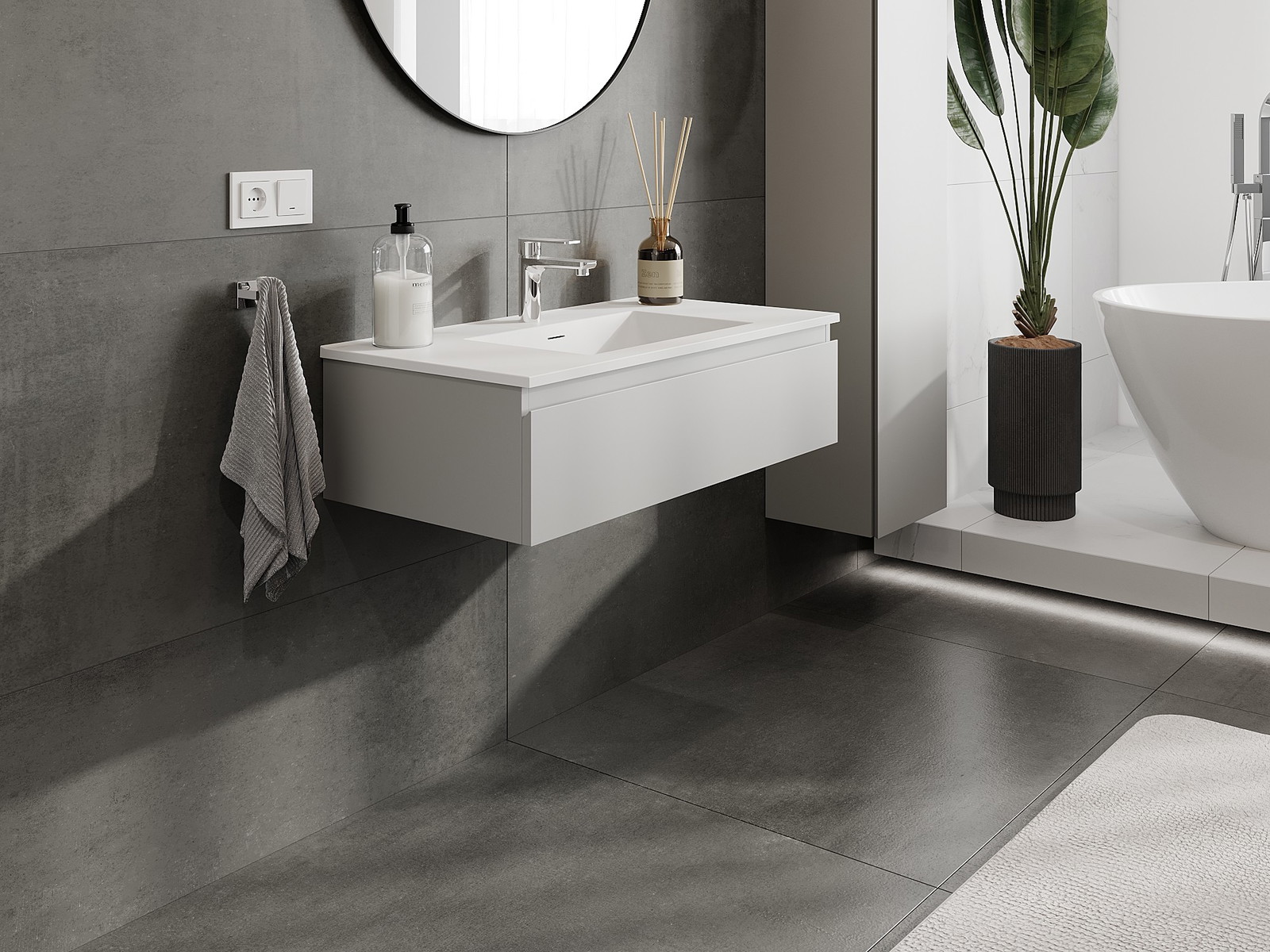 Mexen Orio ντουλάπι μπάνιου 90 cm με νιπτήρα Otis, 1 συρτάρι, γκρι ματ/λευκό ματ