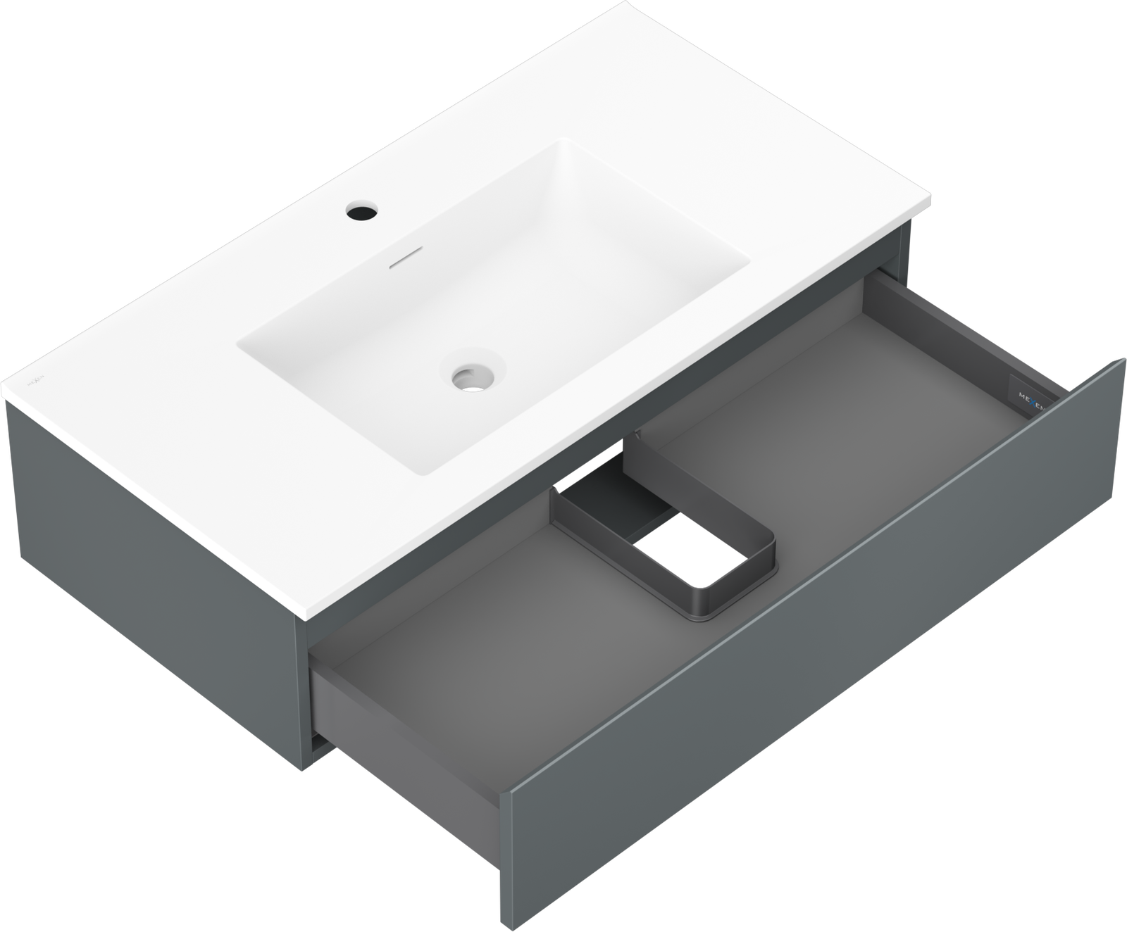 Η εγκοπή στο συρτάρι είναι σχεδιασμένη με τέτοιο τρόπο, ώστε να φιλοξενεί το σιφόνι, το οποίο είναι απαραίτητο στις εγκαταστάσεις νιπτήρων. Έτσι, το έπιπλο μπορεί να εγκατασταθεί πλήρως λειτουργικά, χωρίς την ανάγκη παραίτησης από χώρο στο συρτάρι υπέρ της εγκατάστασης.