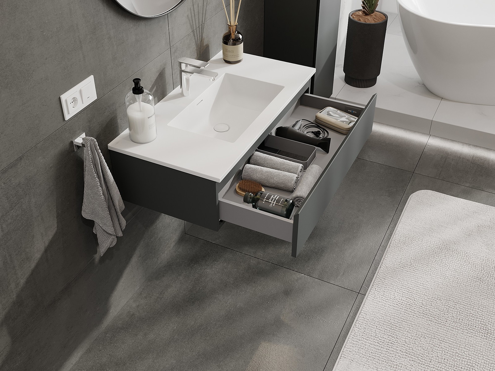 Mexen Orio ντουλάπι μπάνιου 90 cm με νιπτήρα Otis, 1 συρτάρι, γραφίτης ματ/λευκό
