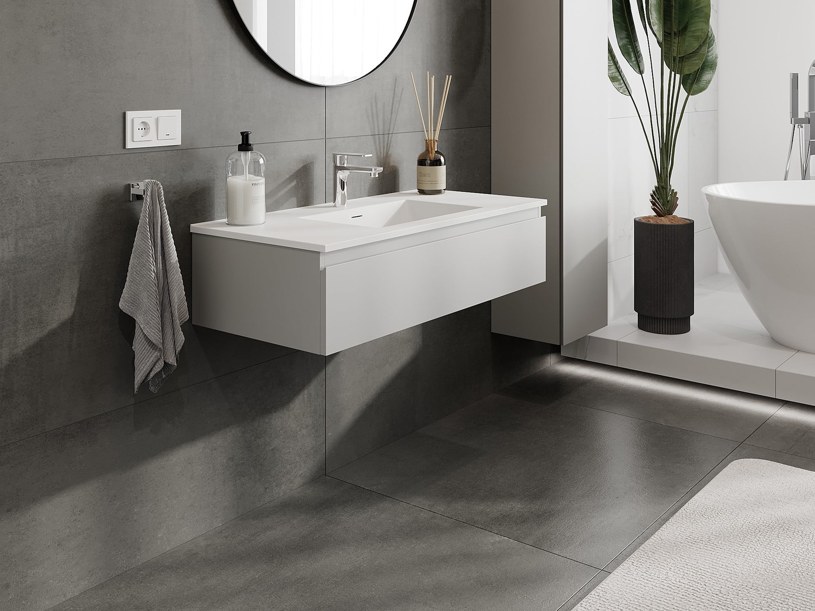 Mexen Orio ντουλάπι μπάνιου 100 cm με νιπτήρα Otis, 1 συρτάρι, γκρι ματ/λευκό ματ