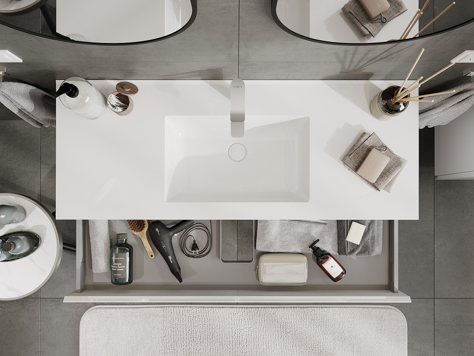 Mexen Orio ντουλάπι μπάνιου 120 cm με νιπτήρα Otis, 1 συρτάρι, λευκή γυαλάδα