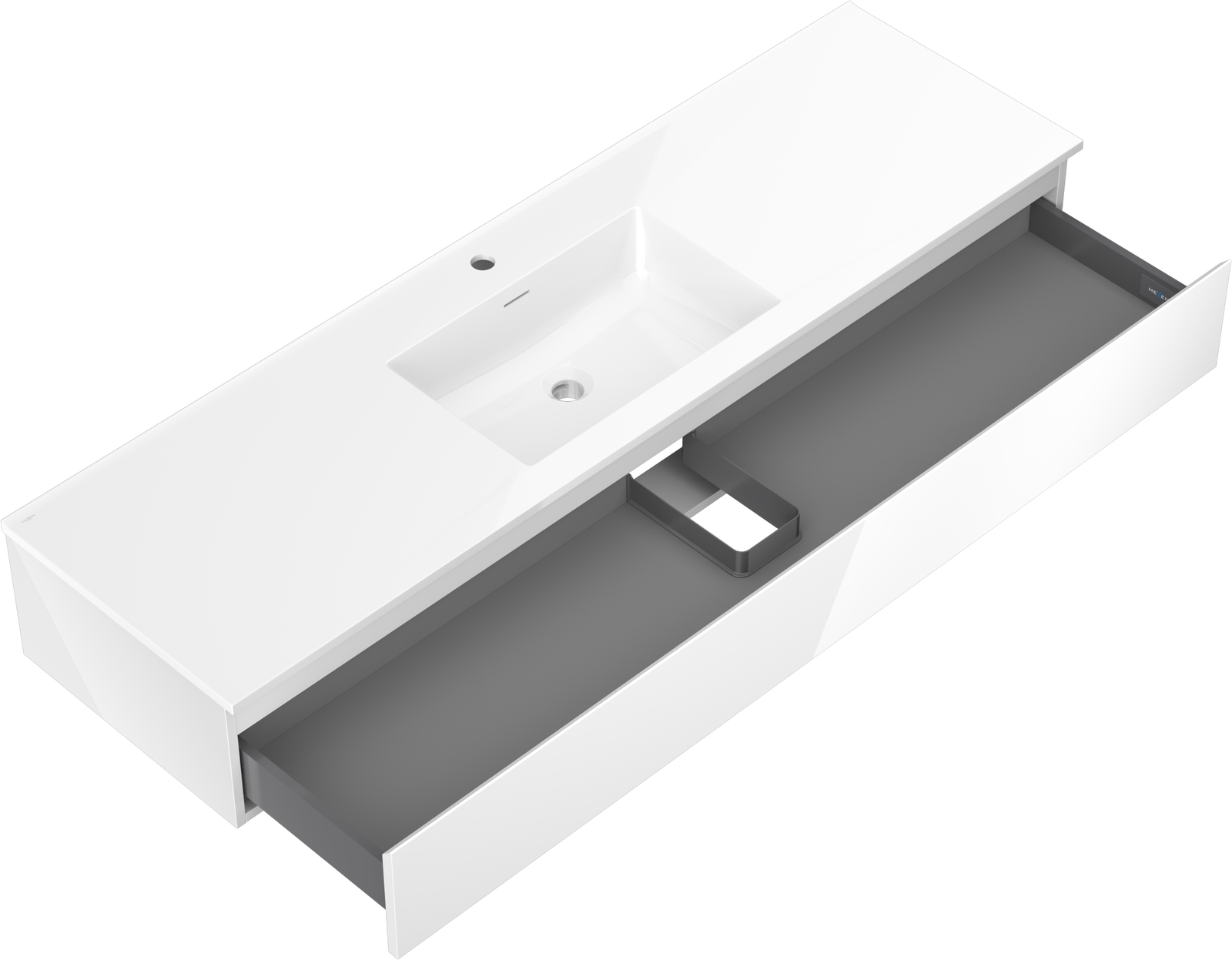 Η εγκοπή στο συρτάρι είναι σχεδιασμένη με τέτοιο τρόπο, ώστε να φιλοξενεί το σιφόνι, το οποίο είναι απαραίτητο στις εγκαταστάσεις νιπτήρων. Έτσι, το έπιπλο μπορεί να εγκατασταθεί πλήρως λειτουργικά, χωρίς την ανάγκη παραίτησης από χώρο στο συρτάρι υπέρ της εγκατάστασης.