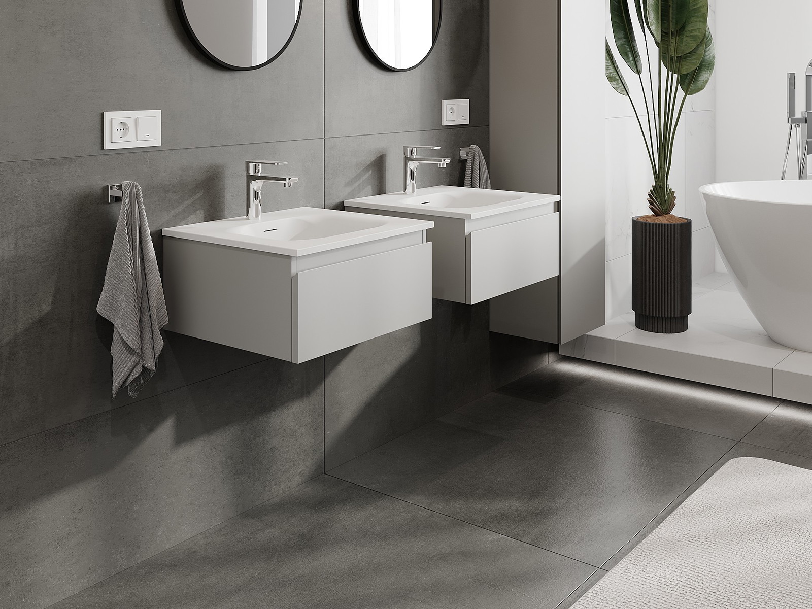 Mexen Orio ντουλάπι μπάνιου 50 cm με νιπτήρα Vela, 1 συρτάρι, γκρι ματ/λευκό ματ