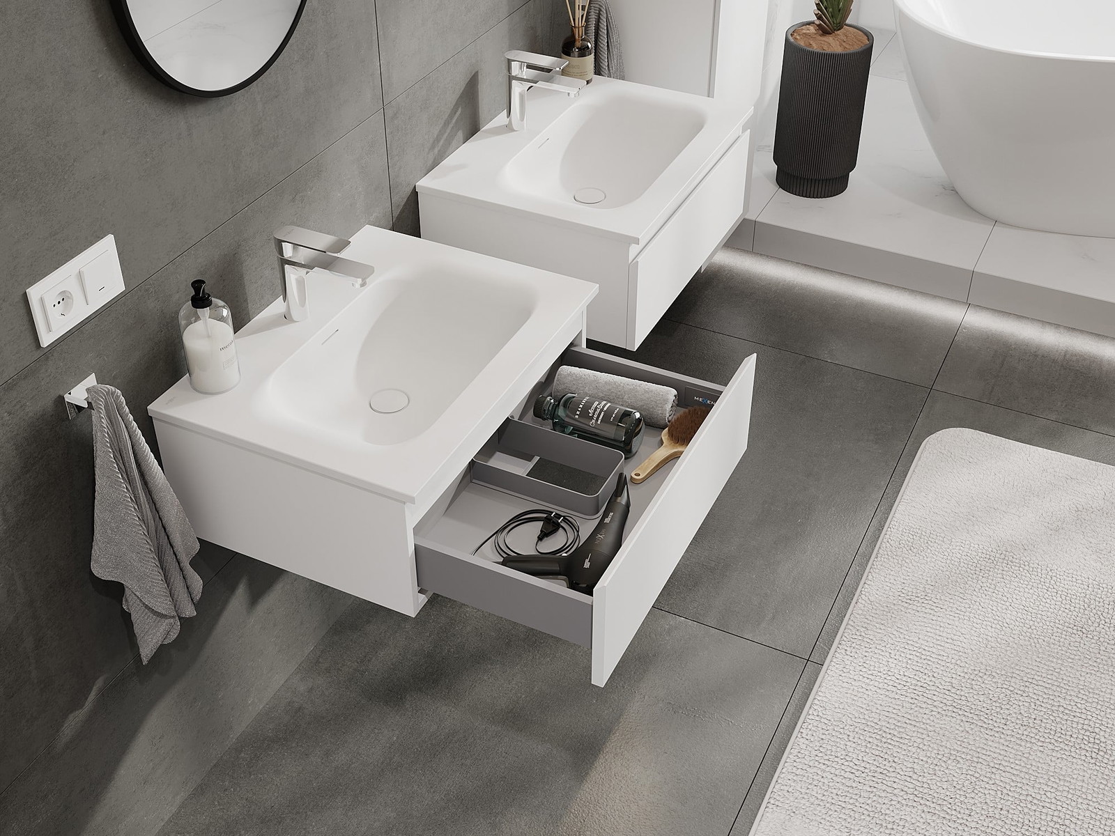 Τα αρθρωτά έπιπλα μπάνιου μας μπορούν να συνδυαστούν μεταξύ τους σε διάφορες χρωματικές διαμορφώσεις, επιτρέποντας πλήρη εξατομίκευση. Μπορείτε να επιλέξετε τόσο την εμφάνιση όσο και τις λειτουργίες των επιμέρους στοιχείων, ώστε να προσαρμόσετε τα έπιπλα στις δικές σας στιλιστικές και λειτουργικές προτιμήσεις.