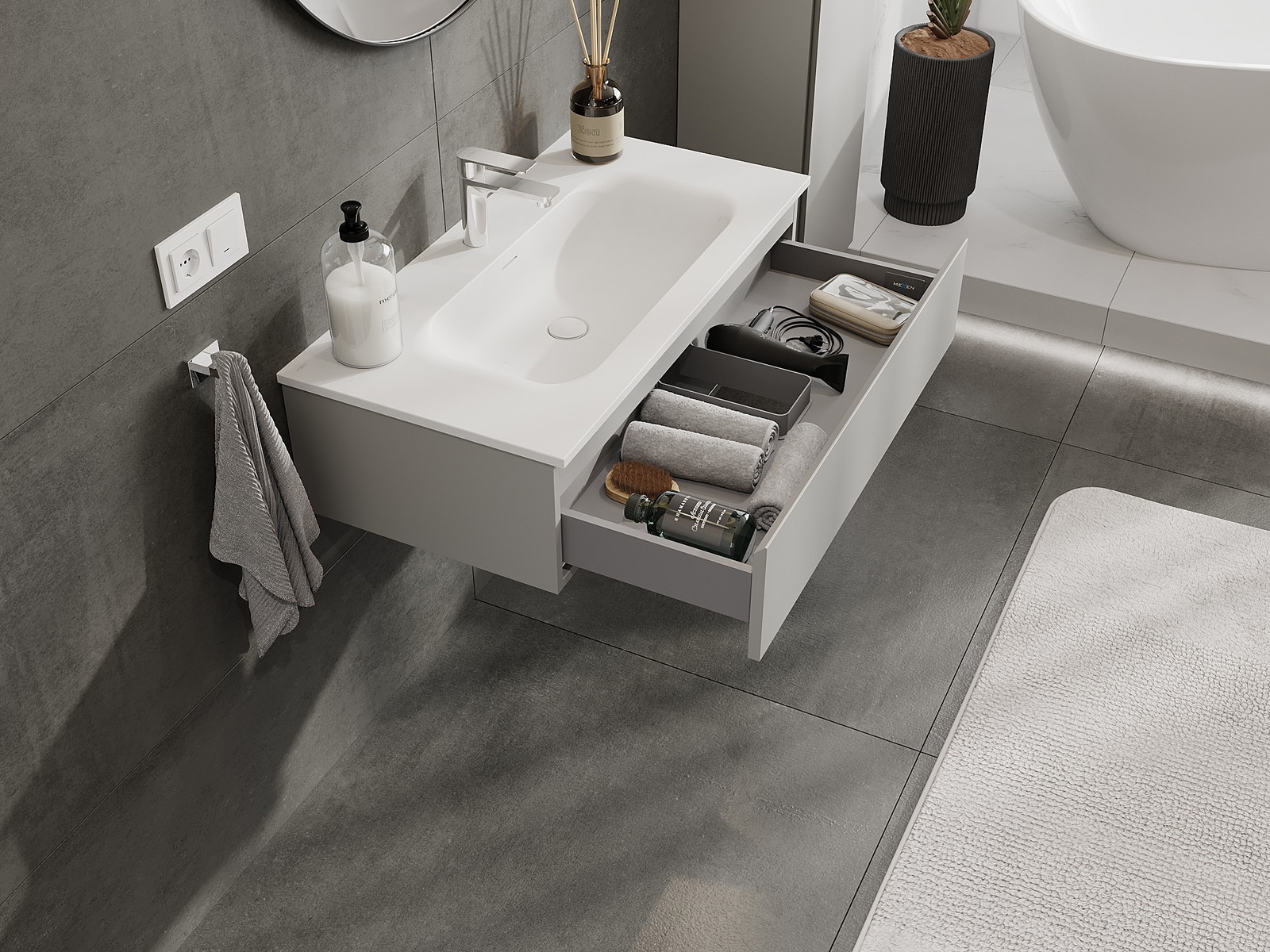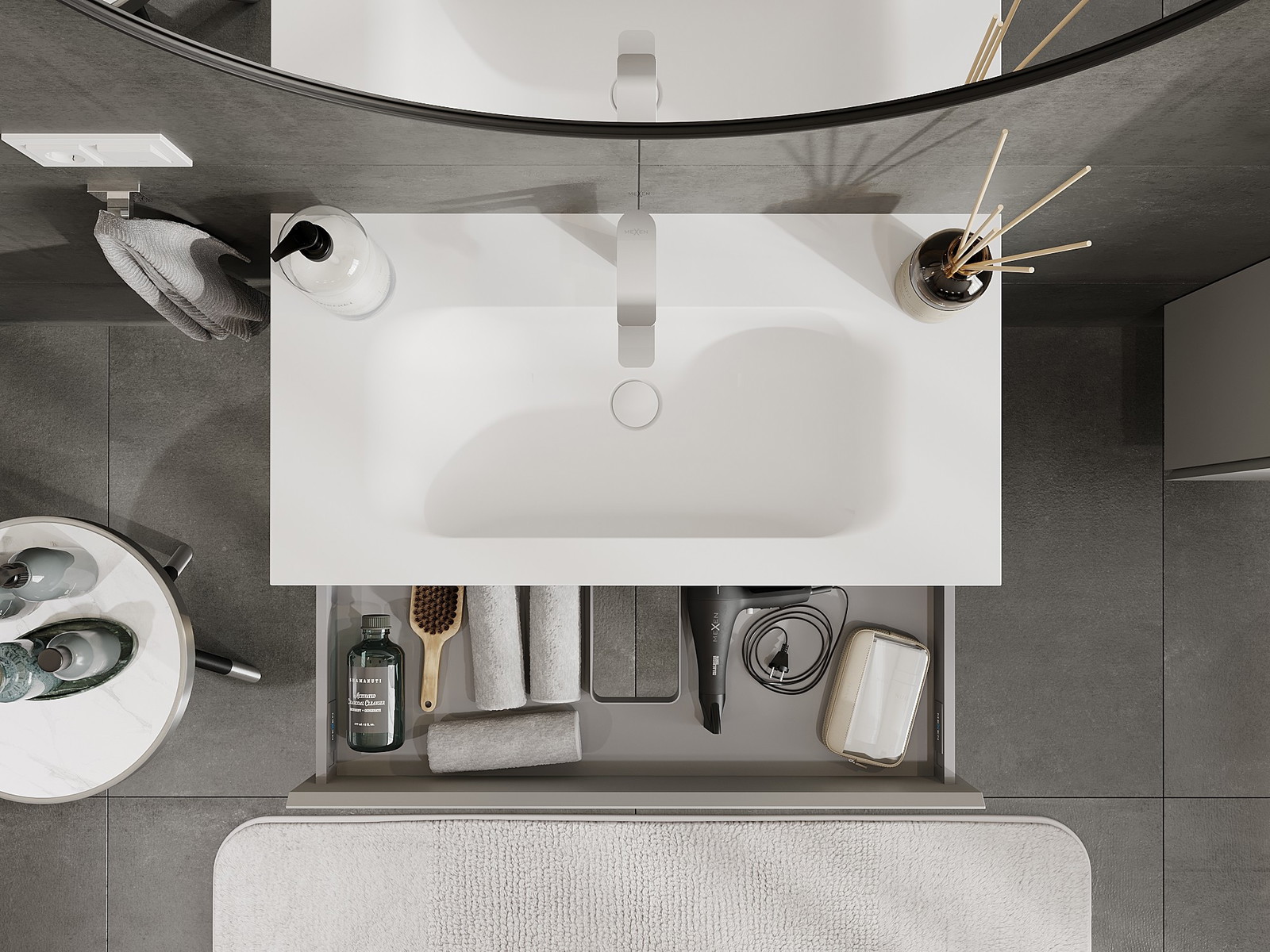 Mexen Orio ντουλάπι μπάνιου 90 cm με νιπτήρα Vela, 1 συρτάρι, γκρι ματ/λευκό ματ