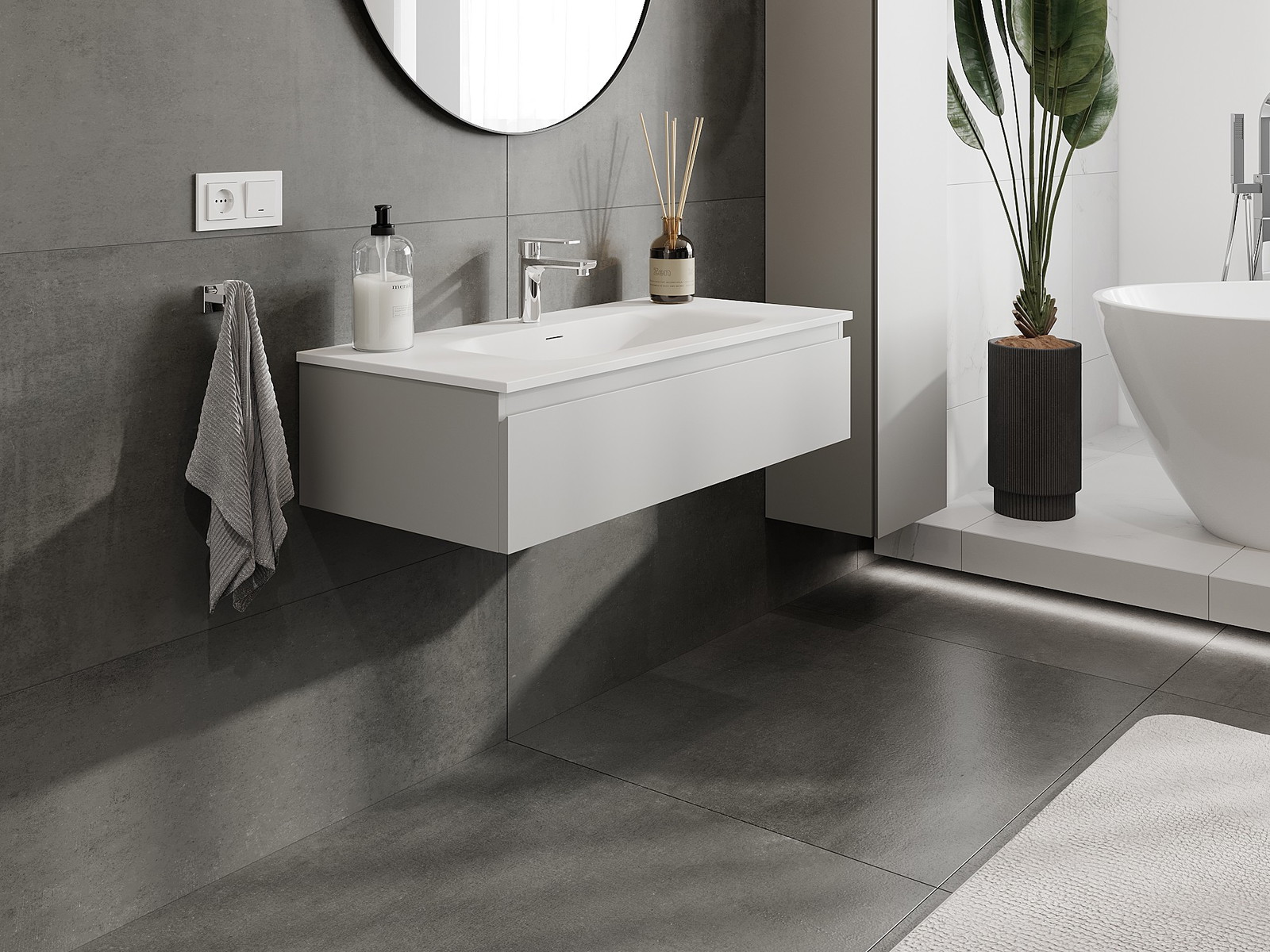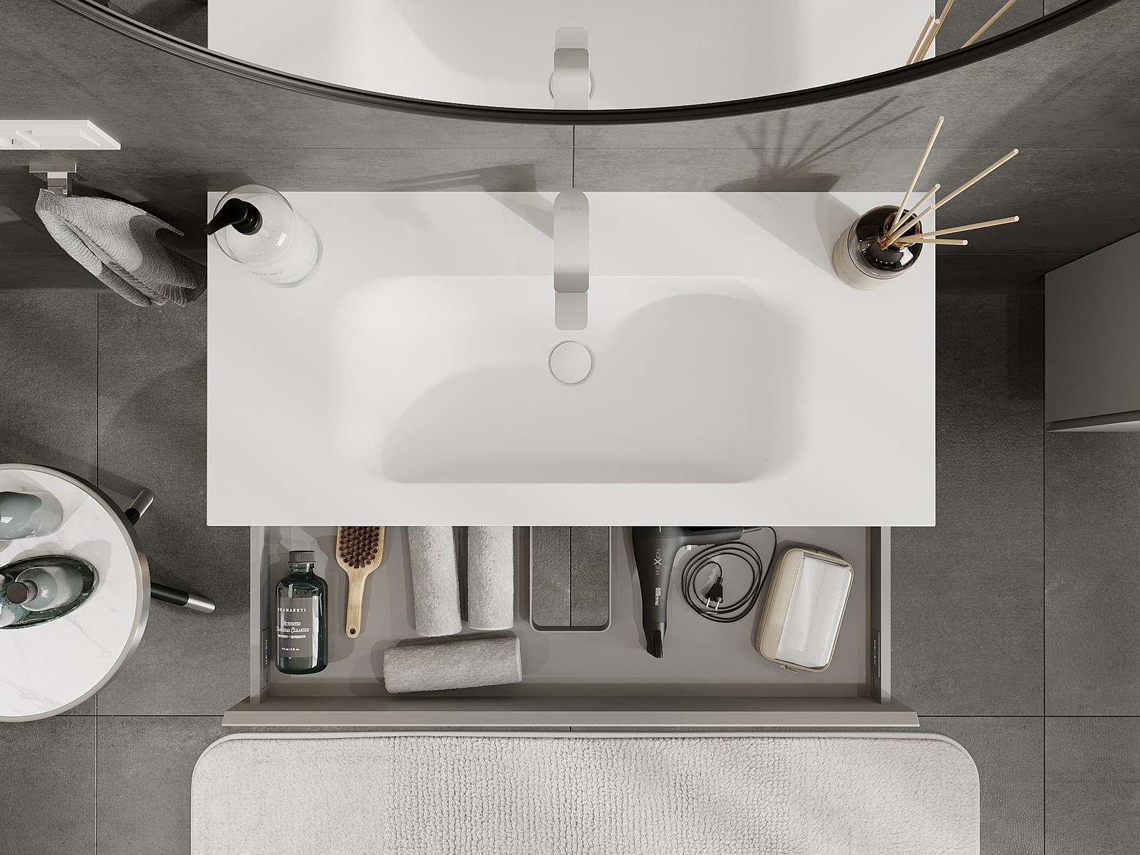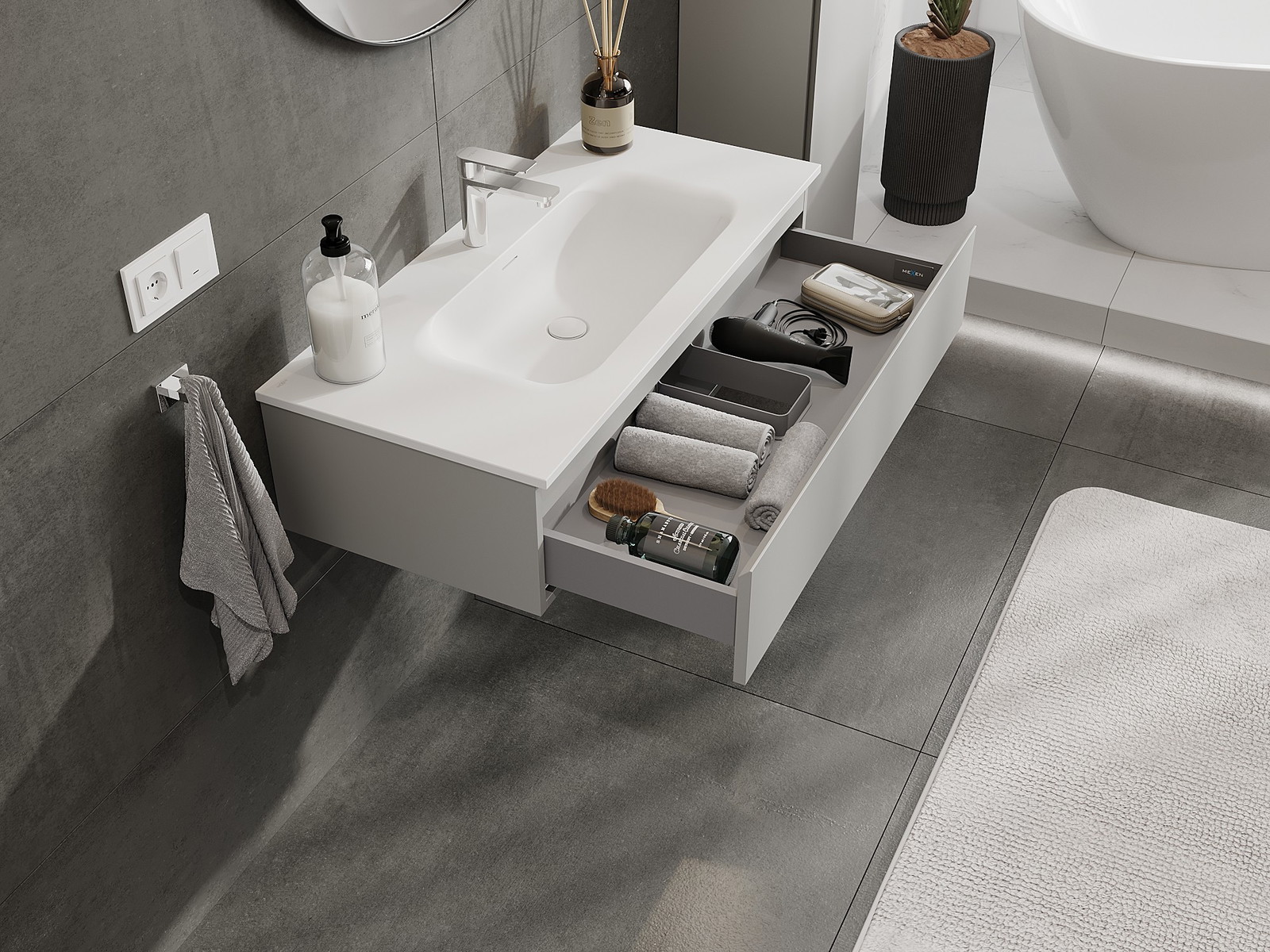 Mexen Orio ντουλάπι μπάνιου 100 cm με νιπτήρα Vela, 1 συρτάρι, γκρι ματ/λευκό ματ