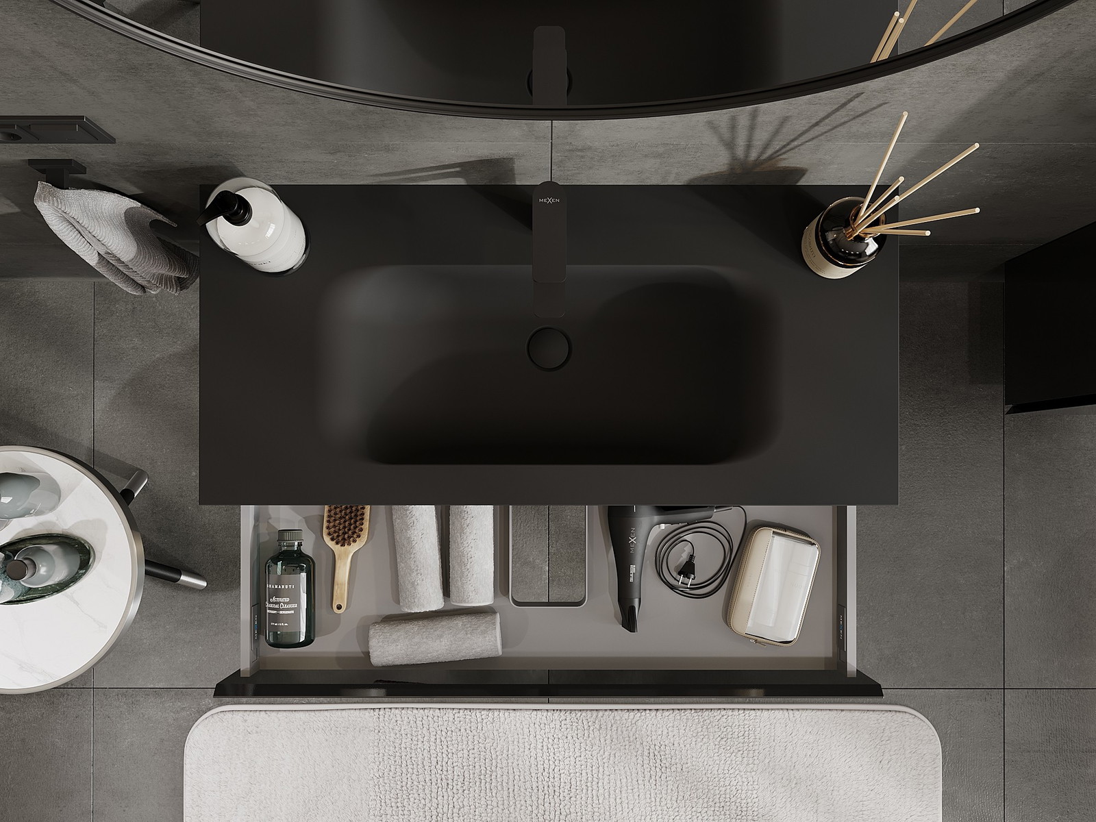 Mexen Orio ντουλάπι μπάνιου 100 cm με νιπτήρα Vela, 1 συρτάρι, μαύρη