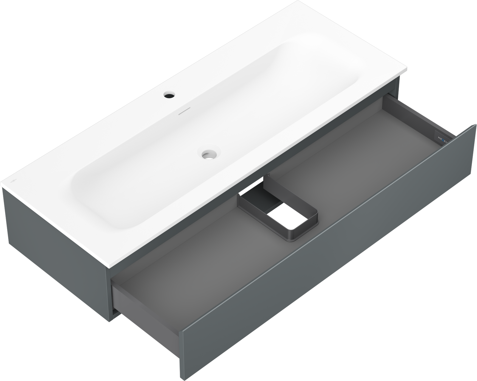 Η εγκοπή στο συρτάρι είναι σχεδιασμένη με τέτοιο τρόπο, ώστε να φιλοξενεί το σιφόνι, το οποίο είναι απαραίτητο στις εγκαταστάσεις νιπτήρων. Έτσι, το έπιπλο μπορεί να εγκατασταθεί πλήρως λειτουργικά, χωρίς την ανάγκη παραίτησης από χώρο στο συρτάρι υπέρ της εγκατάστασης.