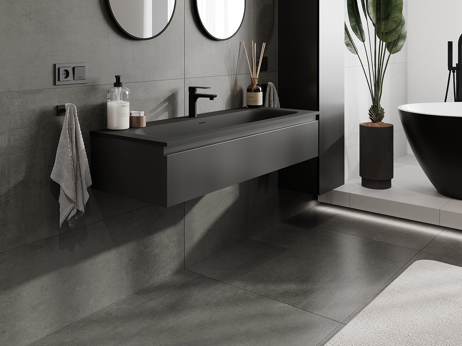 Mexen Orio ντουλάπι μπάνιου 120 cm με νιπτήρα Vela, 1 συρτάρι, μαύρο ματ