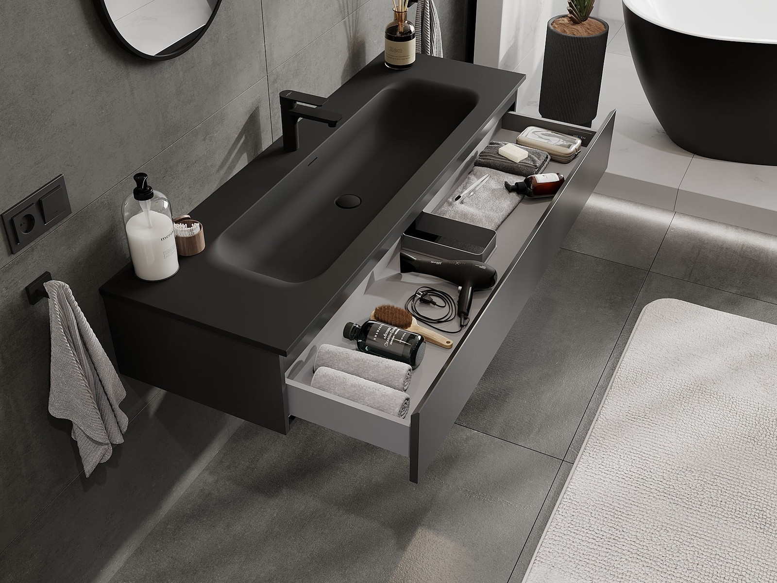 Mexen Orio ντουλάπι μπάνιου 140 cm με νιπτήρα Vela, 1 συρτάρι, μαύρο ματ