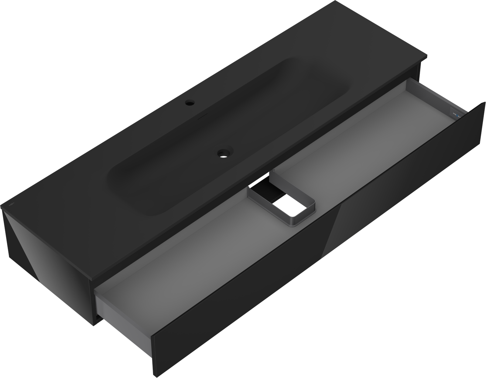Η εγκοπή στο συρτάρι είναι σχεδιασμένη με τέτοιο τρόπο, ώστε να φιλοξενεί το σιφόνι, το οποίο είναι απαραίτητο στις εγκαταστάσεις νιπτήρων. Έτσι, το έπιπλο μπορεί να εγκατασταθεί πλήρως λειτουργικά, χωρίς την ανάγκη παραίτησης από χώρο στο συρτάρι υπέρ της εγκατάστασης.