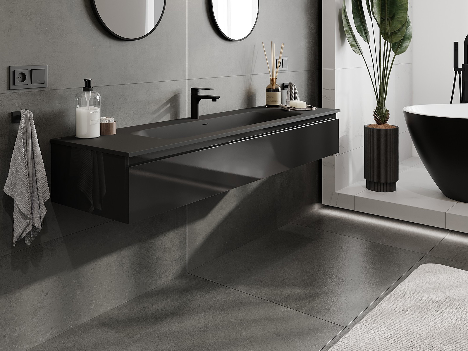 Mexen Orio ντουλάπι μπάνιου 160 cm με νιπτήρα Vela, 1 συρτάρι, μαύρο