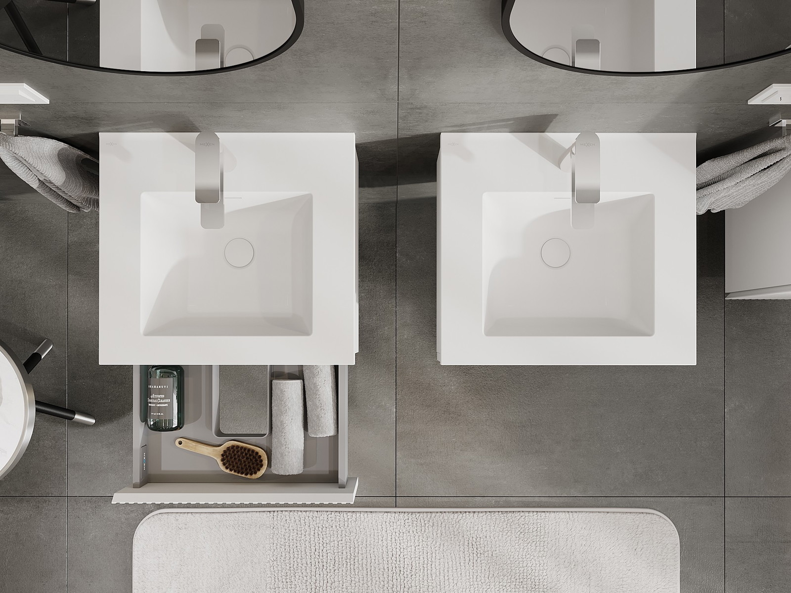 Τα αρθρωτά έπιπλα μπάνιου μας μπορούν να συνδυαστούν μεταξύ τους σε διάφορες χρωματικές διαμορφώσεις, επιτρέποντας πλήρη εξατομίκευση. Μπορείτε να επιλέξετε τόσο την εμφάνιση όσο και τις λειτουργίες των επιμέρους στοιχείων, ώστε να προσαρμόσετε τα έπιπλα στις δικές σας στιλιστικές και λειτουργικές προτιμήσεις.