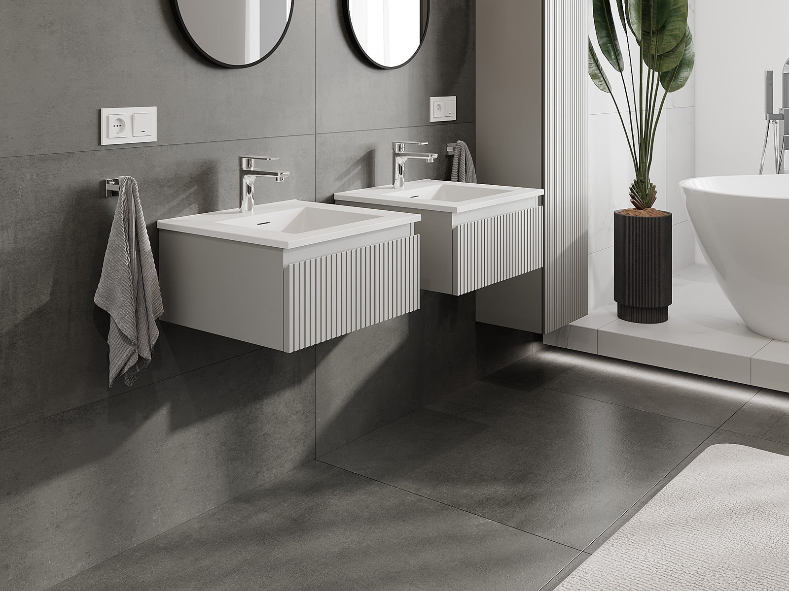 Mexen Rivel ντουλάπι μπάνιου 50 cm με νιπτήρα Otis, 1 συρτάρι, ανάγλυφο, γκρι